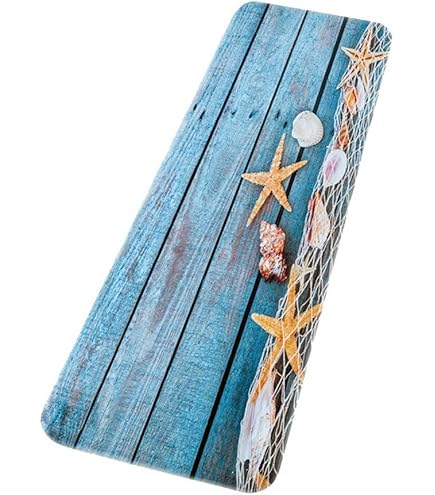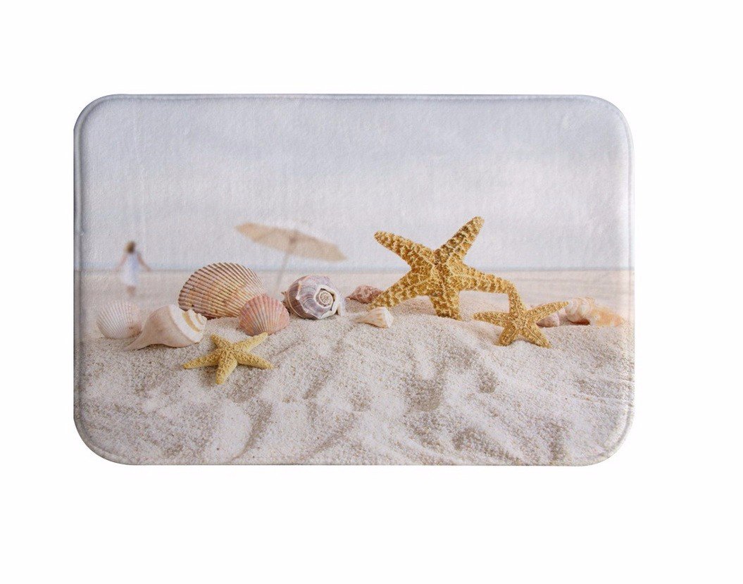 Wow, dieser Badezimmerteppich bringt Strand-Feeling ins Bad! Mit süßen Seestern- und Muschel-Motiven in rustikalem Design. Maße: 40x60 cm - perfekt für die meisten Badezimmer. \\n\\nAus 100% Polyester mit weicher Flanell-Struktur - super angenehm für die Füße! Saugt Wasser gut auf und isoliert gegen kalte Böden. Die rutschfeste Unterseite aus Vlies-Kunststoff hält sicher auf glatten Fliesen. \\n\\nNur 1 cm dick - blockiert keine Türen. Perfekt für Badezimmer, Küche oder als Eingangsmatte. Auch für drinnen und draußen geeignet! Leicht zu reinigen - einfach in die Waschmaschine stecken (kein Bleichmittel!). \\n\\nDie Druckfarben sind weich und haltbar, die Kanten sind sicher verarbeitet. Selbst Haustiere und Kinder können darauf sicher spielen. Trocknet schnell und behält lange ihr neues Aussehen. \\n\\nBring Urlaubsstimmung nach Hause! Dieser Teppich ist nicht nur praktisch, sondern sieht auch noch total niedlich aus. Weich, sicher und langlebig - einfach perfekt für dein Bad!