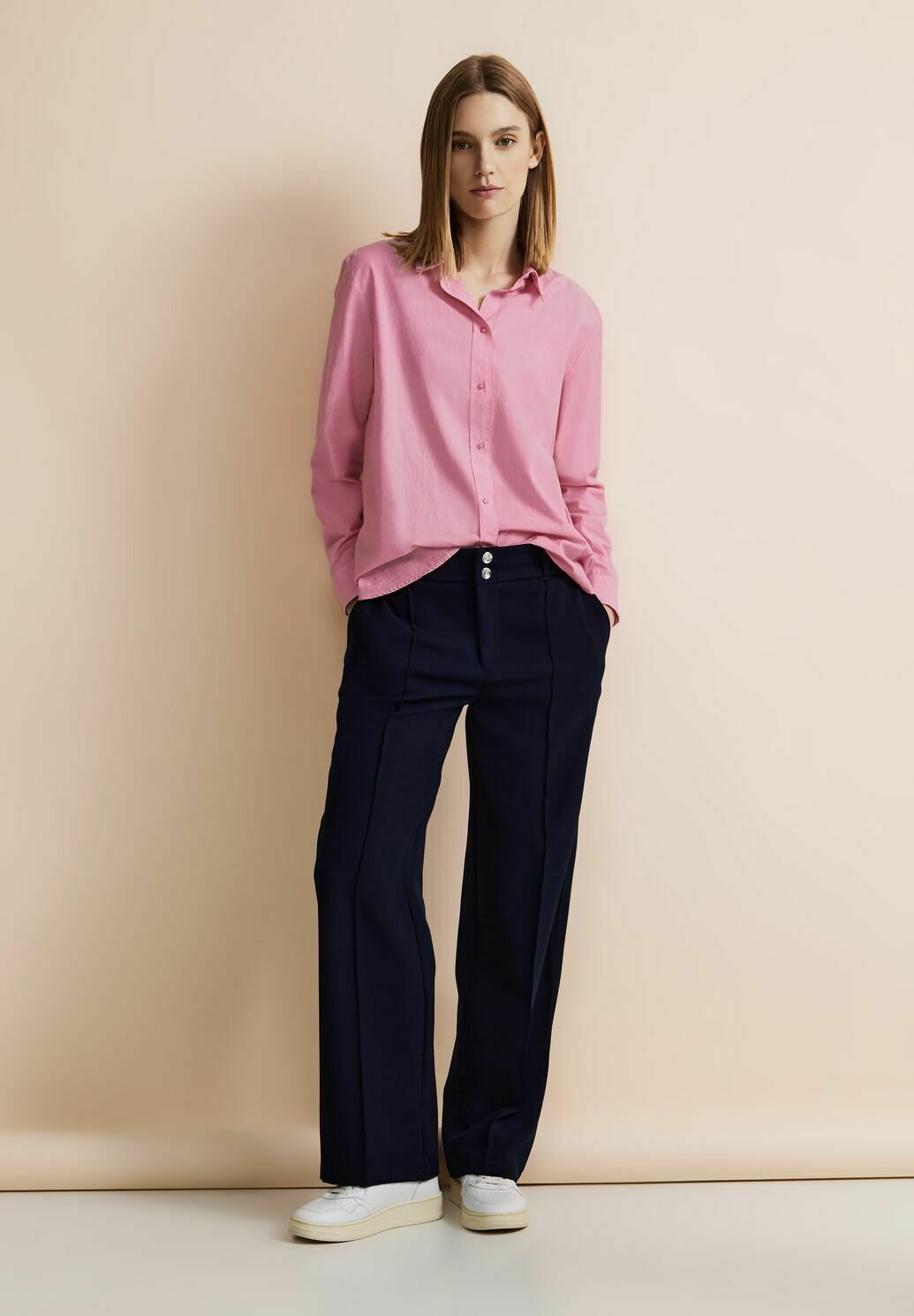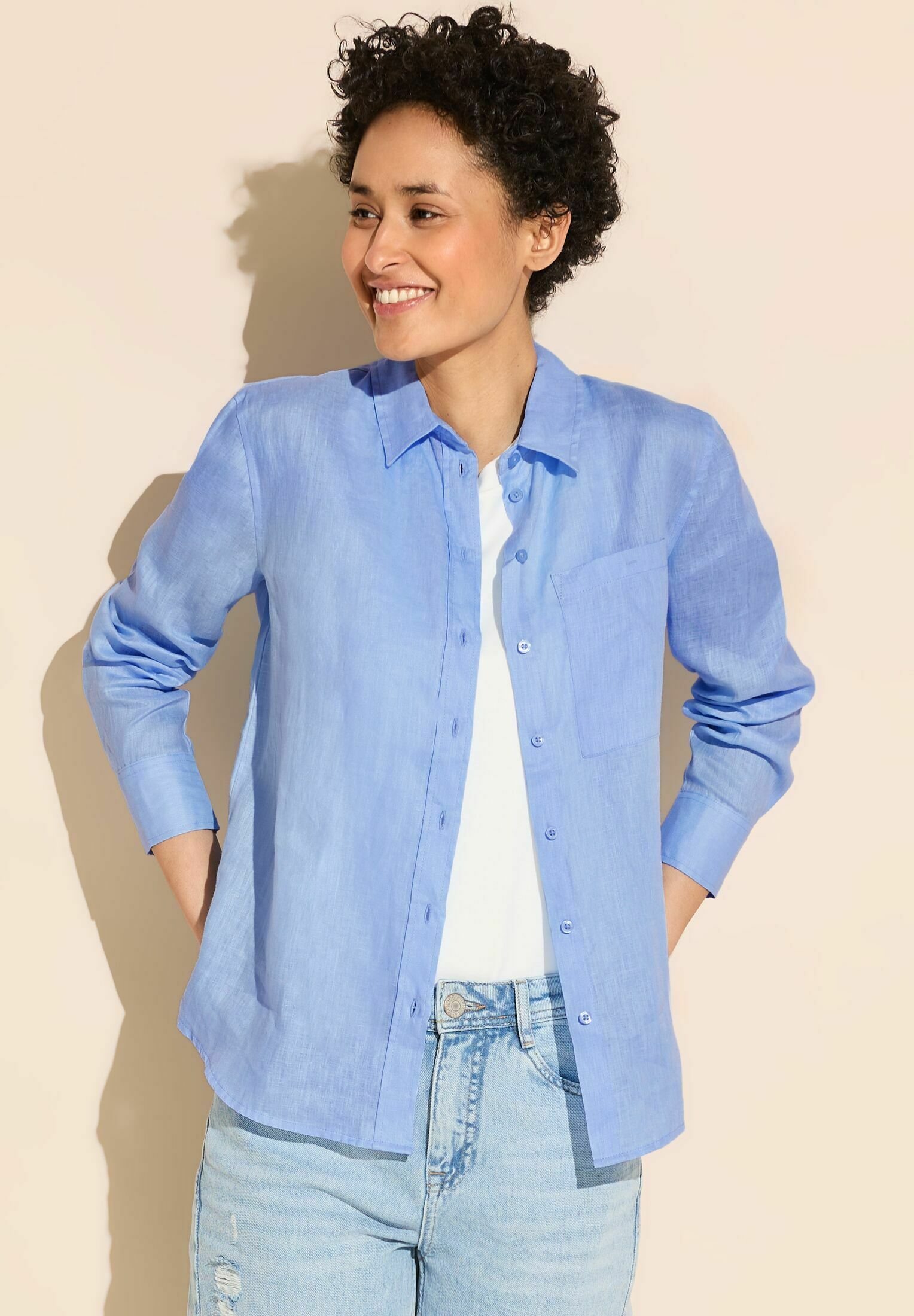 Klassisch schön mit Cord-Charme! Diese Street One Bluse kombiniert Hemdkragen-Eleganz mit gemütlichem Cord-Stoff. Aus 100% Baumwolle mit 3/4-Ärmeln und Knopf-Bündchen. Perfekt fürs Büro oder Casual-Tage. In Größe 38: Armlänge 42,5 cm, Brustweite 56 cm. Ein zeitloses Basic für jeden Anlass!