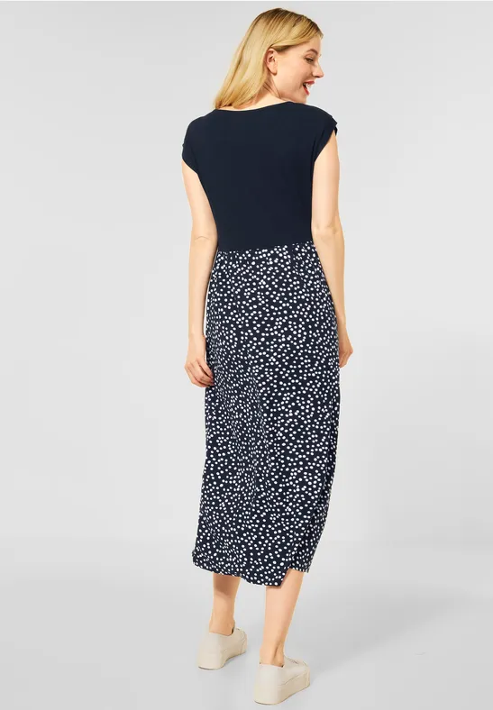 Wow, dieses Street One Kleid ist echt der Hingucker! Der stylische Turtleneck-Kragen combined mit dem spannenden Materialmix macht es zu etwas Besonderem. Das Oberteil hat eine super weiche Rippstruktur, während der Rock aus gemustertem Plissée besteht - das fällt einfach traumhaft und gibt dem Look eine coole Dynamik. Mit 3/4-Ärmeln und dem angenehmen Tragekomfort ist es perfekt für die Übergangszeit. Ob im Office, beim Date oder auf der Party - mit diesem Midi-Kleid machst du immer eine gute Figur. Street One weiß einfach, wie man feminine Silhouetten mit modernen Details kombiniert. Der Materialmix aus den verschiedenen Stoffen gibt dem Kleid Charakter und sorgt dafür, dass du dich den ganzen Tag wohl fühlst. Perfekt für alle, die es elegant und gleichzeitig lässig mögen. Einfach anziehen und strahlen - mehr braucht es manchmal nicht!
