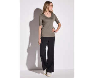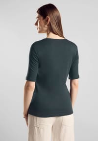 Dieses Street One Palmira T-Shirt ist ein echter Basic, den du immer anziehen kannst! Mit dem lässigen V-Ausschnitt und Halbärmeln sitzt es einfach perfekt. Aus weicher Baumwolle mit Baumwollfutter auf der Vorderseite - also super blickdicht und angenehm zu tragen. Der körpernahe Schnitt ist leicht tailliert und schmeichelt deiner Figur. In Größe 38 ist es etwa 64cm lang mit 90cm Brustumfang - also genau die richtige Länge. Perfekt für alle Alltagssituationen: Ob zur Jeans, unter einen Blazer fürs Büro oder einfach so für einen entspannten Tag. Sieht alleine gut aus oder als Unterteil für andere Kleidungsstücke. Einfach anziehen und du fühlst dich sofort wohl! Street One Qualität die hält, was sie verspricht. Waschbar und pflegeleicht - genau das, was man von einem guten Basic erwartet!