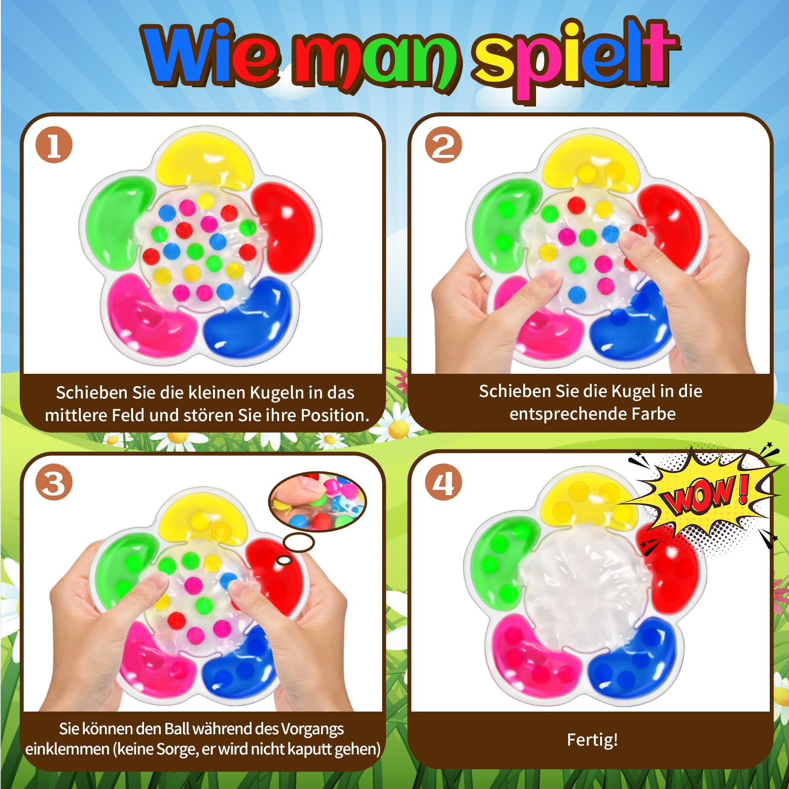Total süßes Spielzeug für Kinder, die was zum Entspannen brauchen! Die Blume mit bunten Gummibällen ist nicht nur hübsch, sondern hilft echt beim Stressabbau – einfach drücken und runterkommen. Super für Kids mit ADHS oder Autismus, aber auch für Erwachsene, die mal abschalten wollen. Das Design fördert spielerisch Farben und Sortieren, und weil's so kompakt ist, passt es in jede Tasche für unterwegs: Schule, Reisen oder einfach daheim. Made aus sicherem Material, ohne scharfe Kanten, und mega-langlebig. Als Geschenk ein Hit – ob Geburtstag, Weihnachten oder als kleine Aufmerksamkeit. Macht einfach gute Laune und entspannt!