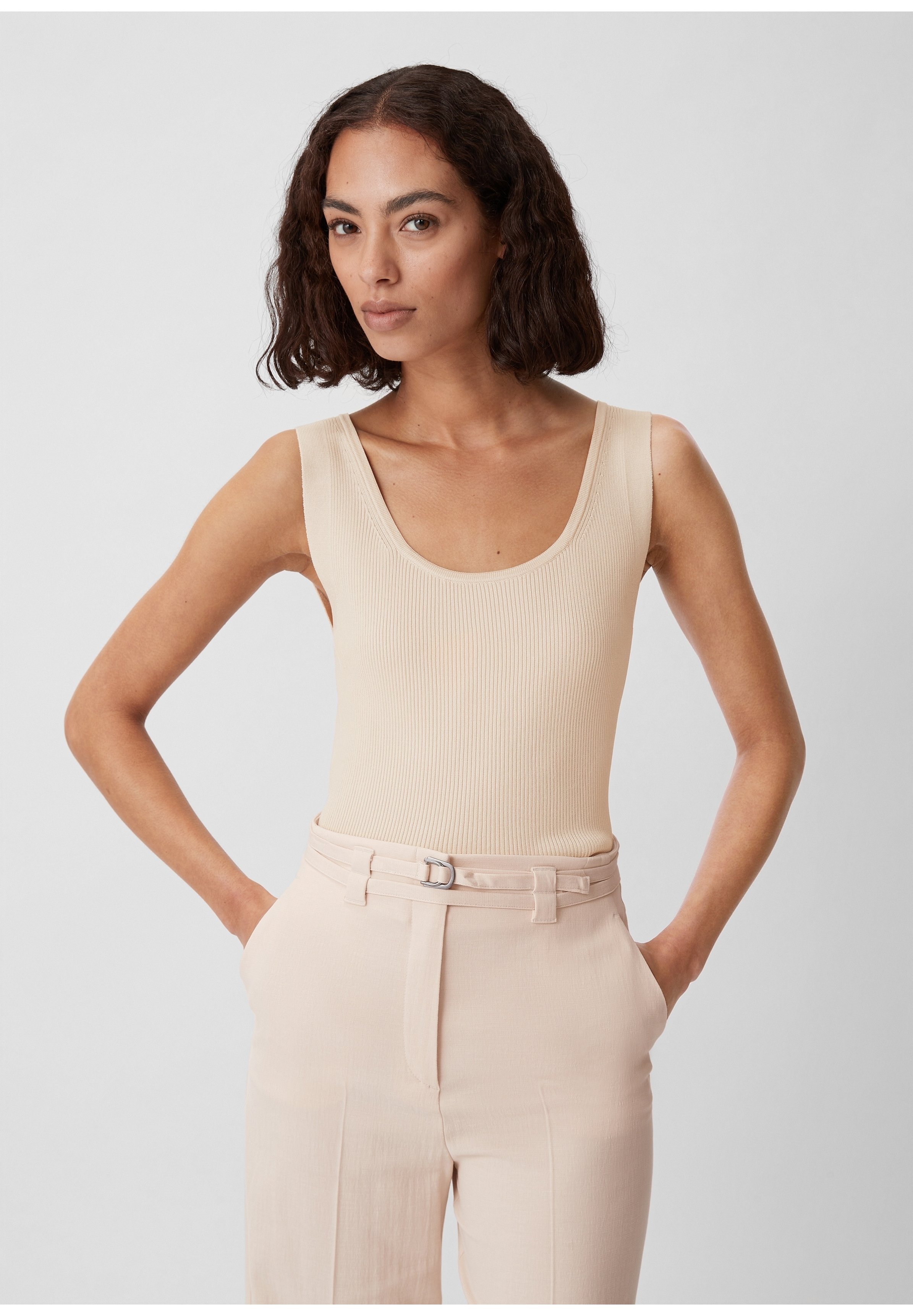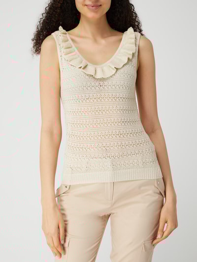 Hey, dieses Strick-Top von comma ist ja richtig sommerlich! In schönem Beige - passt zu fast allem. Ärmellos und luftig - perfekt für warme Tage. Aus 50% Baumwolle und 50% Viskose - super weich und angenehm auf der Haut. Das Ajourmuster gibt dem Top eine besondere Note - nicht zu auffällig, aber doch stylisch. Größe 42 - klassische Passform. Einfach über Jeans, Rock oder Shorts - schon bist du ready für den Tag. Perfekt für Büro, Freizeit oder Urlaub - wirklich vielseitig. Leicht und bequem - kaum spürbar am Körper. Modellnummer 2166475.0505.42 - falls du nochmal das gleiche suchst. Einfach anziehen und wohlfühlen - mehr Sommer-Feeling geht kaum! Ein Basic, das in keinem Kleiderschrank fehlen sollte.