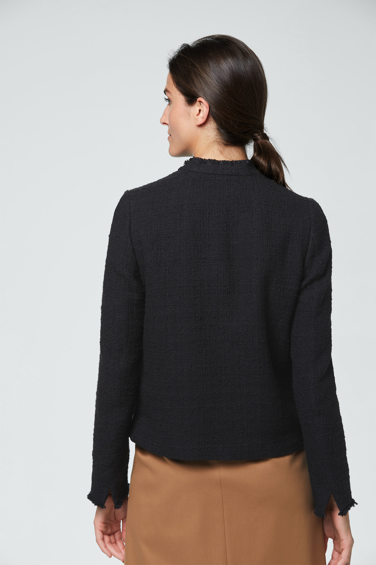 Dieser schwarze Blazer ist dein neuer Liebling für festliche Anlässe! Mit dem tiefen Ausschnitt und der lässigen Strick-Optik vereint er Eleganz mit Bequemlichkeit. Perfekt für Hochzeiten, Feiern oder einen stylischen Büro-Look.