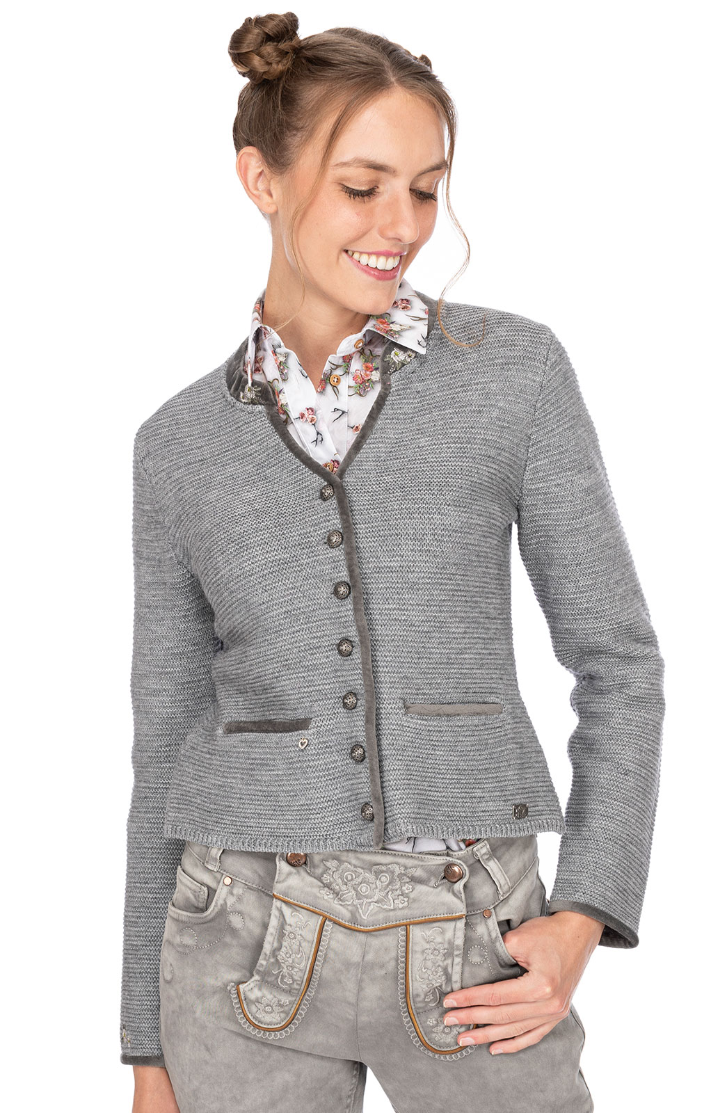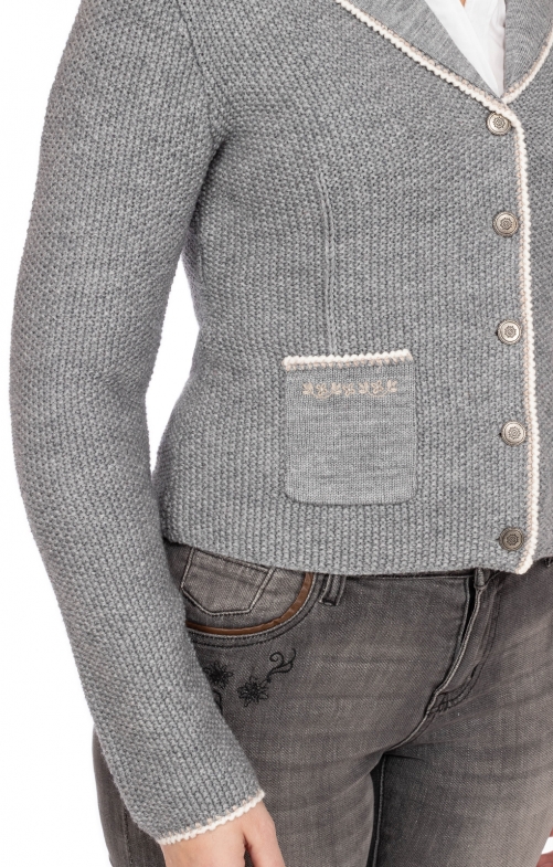 Spieth & Wensky Trachten Strickjacke KLEMENTINE - Hellgrau Mit Merino-Wolle