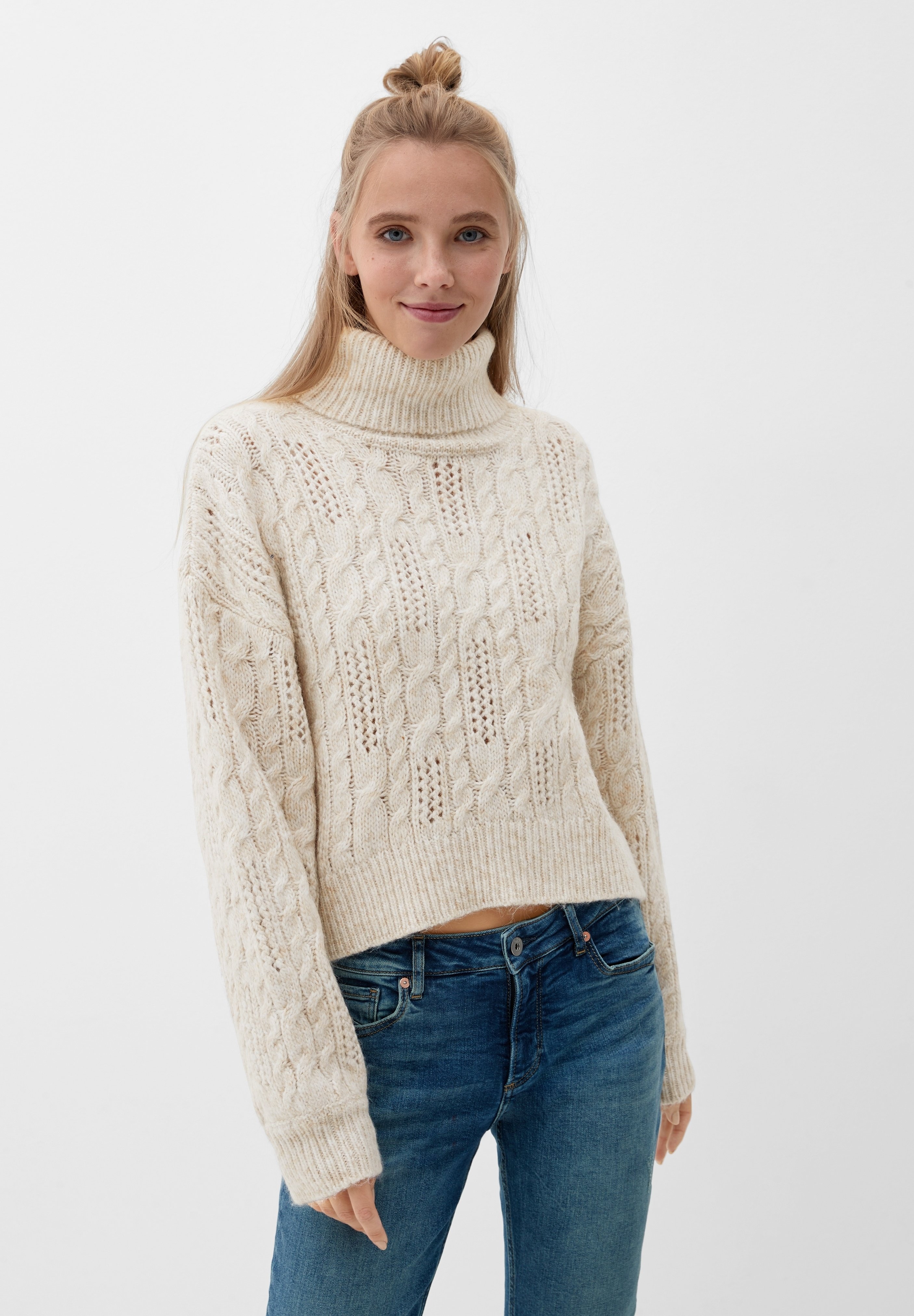 QS Strickpullover Mit Ajour-Detail - Weicher Stehkragen Pullover