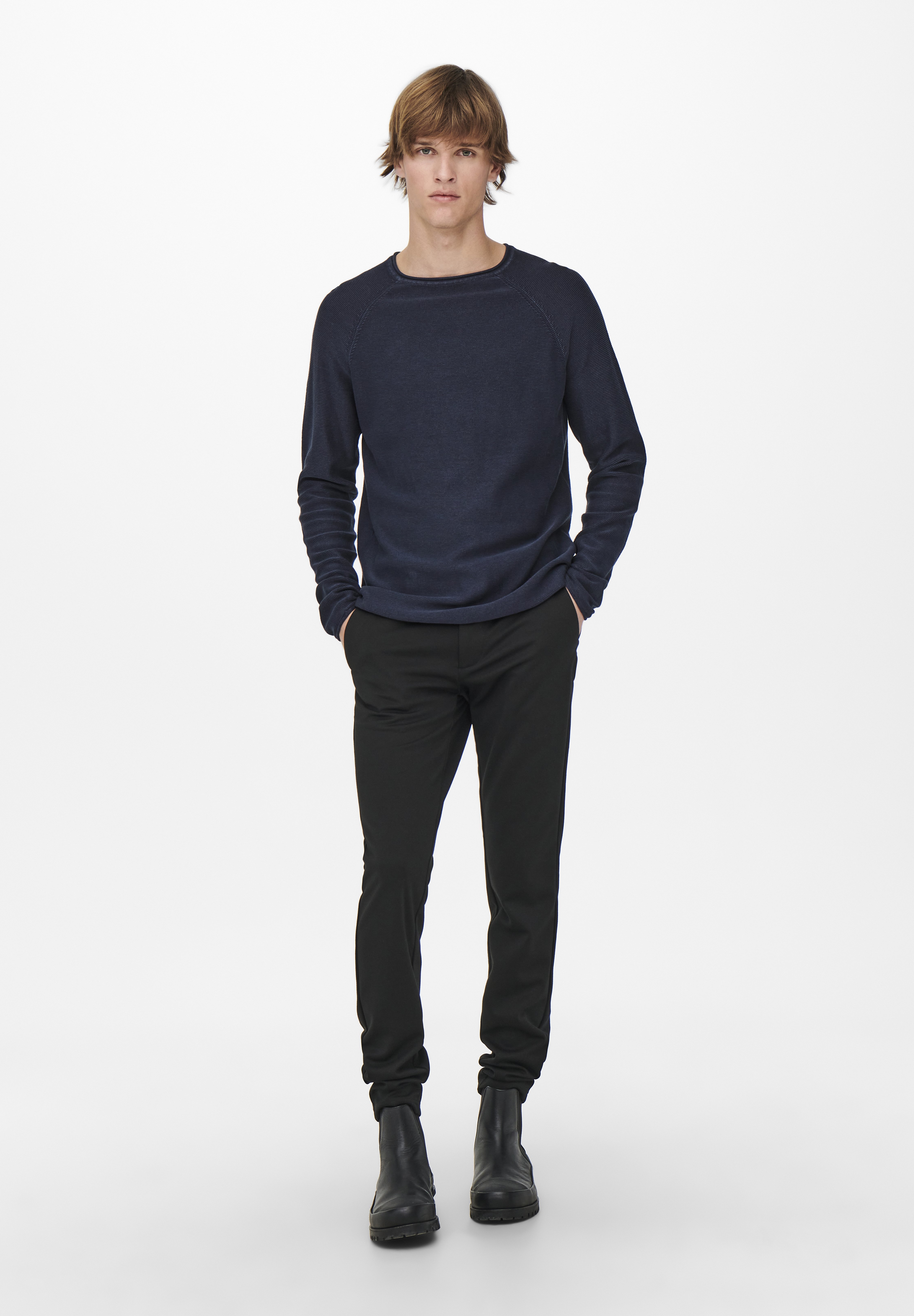 Stylischer Comfort vom Feinsten! Dieser ONLY & SONS Strickpullover im Modell ONSCOPER vereint nordisches Design mit maximalem Tragekomfort. Perfekt für kühlere Tage im Büro, an der Uni oder in der Freizeit. Die dänische Marke ONLY & SONS steht für qualitative Basics, die sich vielseitig kombinieren lassen. Ob zu Jeans, Chinos oder sogar über einem Hemd - dieser Pullover passt immer! Das weiche Material fühlt sich angenehm auf der Haut an und wärmt ohne zu beschweren. Ein zeitloser Klassiker, der in keiner Herrengarderobe fehlen sollte. Einfach anziehen und wohlfühlen - so geht modischer Komfort!