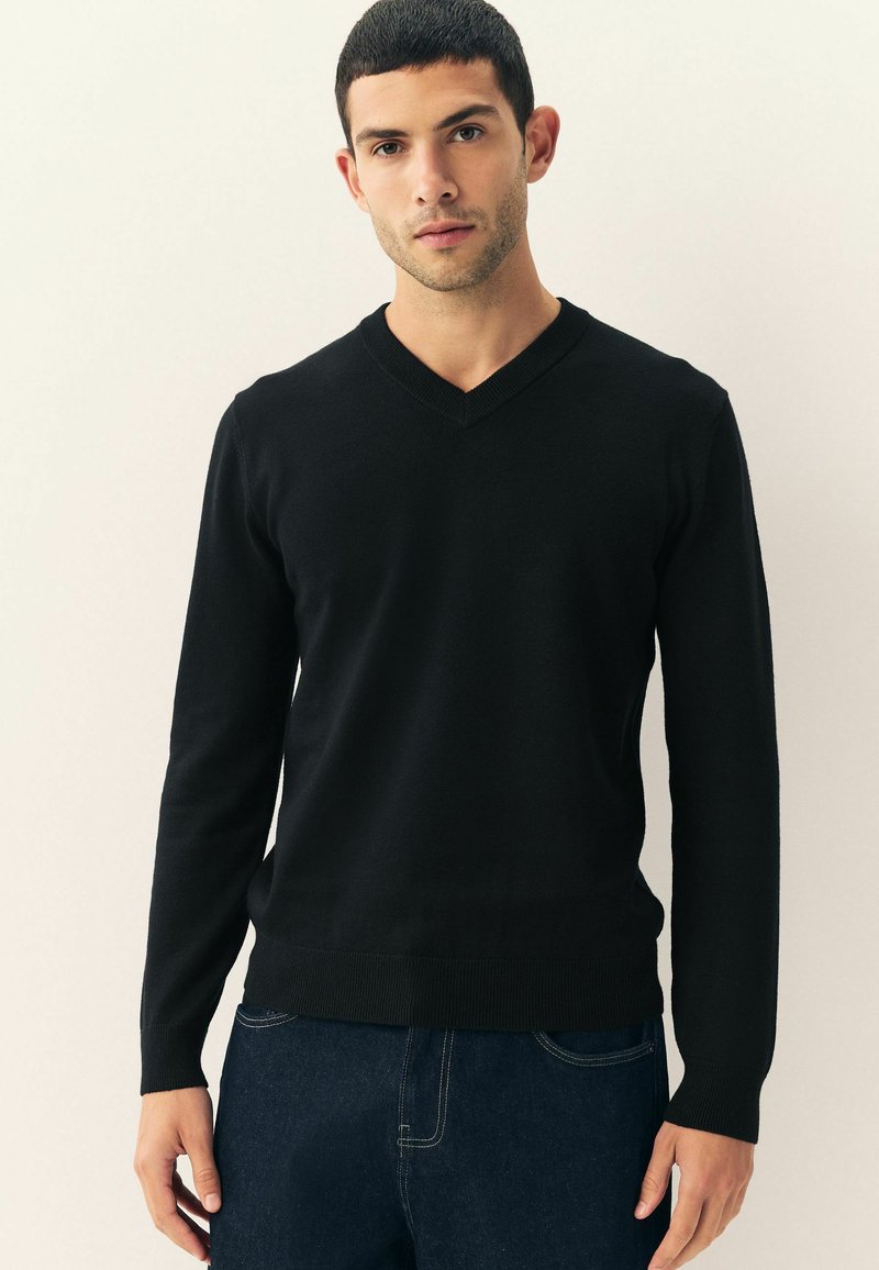 Basic, aber oho! Diese 2 Strickpullover von NEXT sind echte Allrounder für deinen Kleiderschrank. Mit dezentem V-Ausschnitt und gerippten Bündchen an Ärmeln und Saum. Aus baumwollreichem Material, super weich und angenehm auf der Haut. Perfekt zum Schichten über Hemden oder T-Shirts, aber auch solo ein Hingucker. Maschinenwaschbar bei 40°C - praktisch und pflegeleicht. Ob im Büro, in der Freizeit oder unter der Jacke - diese Pullover passen immer. Mit zwei Stück im Pack hast du immer ein frisches Teil parat. Die klassische Passform sitzt einfach perfekt. In verschiedenen Farben erhältlich - mix and match nach Lust und Laune. Ein Must-Have für alle, die auf zeitlose Basics stehen. Einfach anziehen und wohlfühlen!