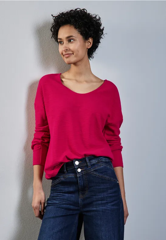 Suchst du ein Shirt, das sowohl bequem als auch stylisch ist? Dieses Strukturshirt von Street One kombiniert genau das! Der U-Boot-Ausschnitt sitzt perfekt und ist nicht zu tief - ideal für den Alltag. Die seitlichen Schlitze mit Knopfdetails geben dem Shirt einen besonderen Look, ohne zu aufdringlich zu sein. Das Material ist ein Baumwollmix mit Stretch-Anteil, also super angenehm zu tragen und beweglich genug für einen aktiven Tag. In Größe 38 hat es eine Weite von 53 cm und eine Länge von 61 cm - also ein schöner Regular Fit, der nicht zu eng sitzt. Perfekt für die Arbeit, zum Einkaufen oder für einen Café-Besuch mit Freundinnen. Kombiniere es mit Jeans für einen lässigen Look oder mit einer schicken Hose für einen eleganteren Style. Street One steht für gute Qualität und passende Schnitte - dieses Shirt beweist es wieder! Einfach anziehen, und du fühlst dich den ganzen Tag wohl und siehst dabei noch gut aus. Ein echter Basic, der in keinem Kleiderschrank fehlen sollte!