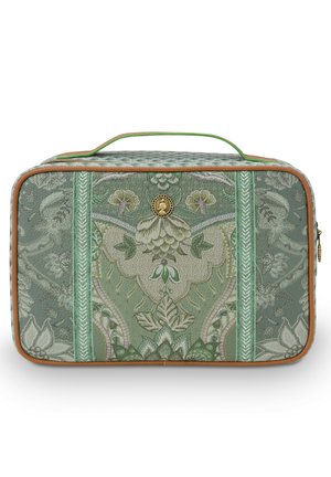 Wow, diese Kosmetiktasche von Pip Studio ist einfach nur traumhaft schön! Im charakteristischen Daisy Dreams Design in Grün - so süß! Aus edlem Samt-Polyester-Mix, super weich in der Haptik aber dennoch stabil in der Form. Mit 26cm Länge geräumig genug für all deine Kosmetik, Pflegeprodukte oder Accessoires. Der Reißverschluss schließt sicher, nichts fällt raus. Perfekt für die Handtasche, Reise oder einfach als stylischer Aufbewahrungsbehälter im Badezimmer. Sieht aus wie ein kleines Kunstwerk - da macht das Schminken gleich doppelt so viel Spaß! Auch super als Geschenk für die beste Freundin oder sich selbst. Einfach einstecken und überall hin mitnehmen - diese Tasche macht immer eine gute Figur!