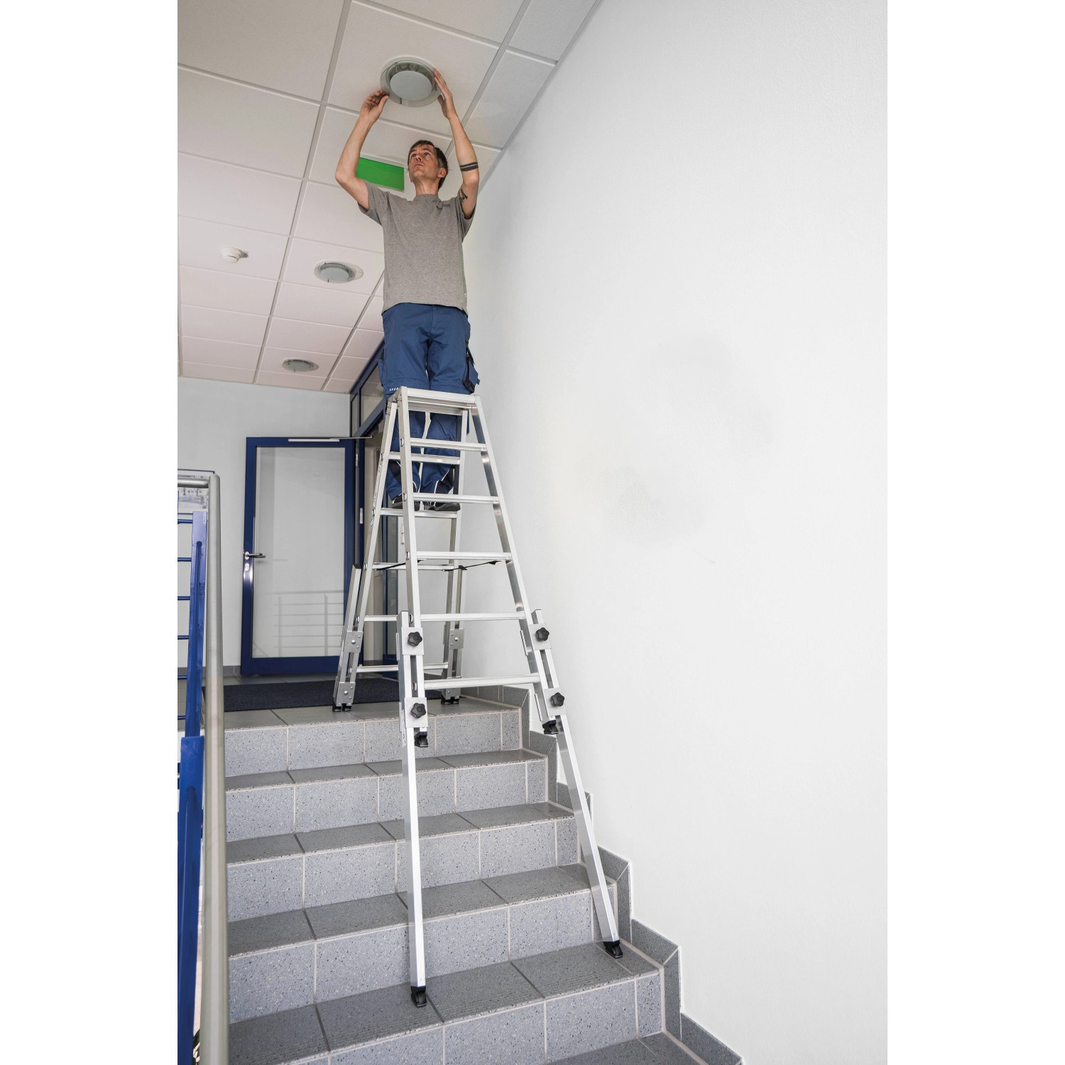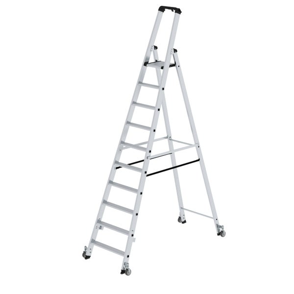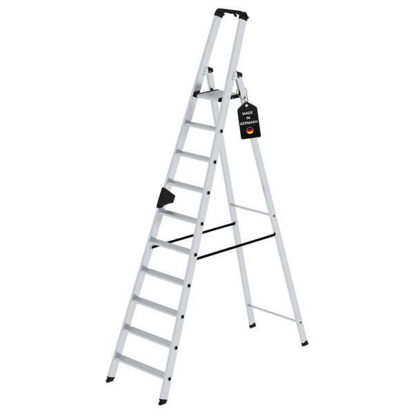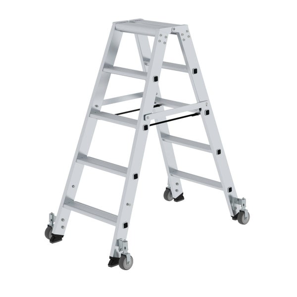 Alter, das ist ja eine richtige Profi-Leiter! Die PROREGAL Stehleiter mit 12 Stufen ist ein echtes Arbeitstier. Aus stabilem Aluminium gefertigt und made in Germany - da weißt du, was du hast. Mit 150kg Tragkraft hält sie wirklich alles aus, was du ihr zumutest. Die vier selbstarretierenden Rollen (80mm Durchmesser) sind super praktisch - einfach zur Seite schieben, ohne abzusteigen! Die Arbeitshöhe von 4,8 Metern bringt dich auch an die höchsten Stellen, und die große Plattform gibt dir einen sicheren Stand. Die geriffelten Stufen sind rutschsicher, und die nivello Leiterschuhe sorgen für stabilen Stand auch auf unebenem Untergrund. Ob im Handwerksbetrieb oder zu Hause - diese Leiter ist einfach unschlagbar. Mit der praktischen Ablageschale hast du dein Werkzeug immer griffbereit. Eine Investition, die sich wirklich lohnt!