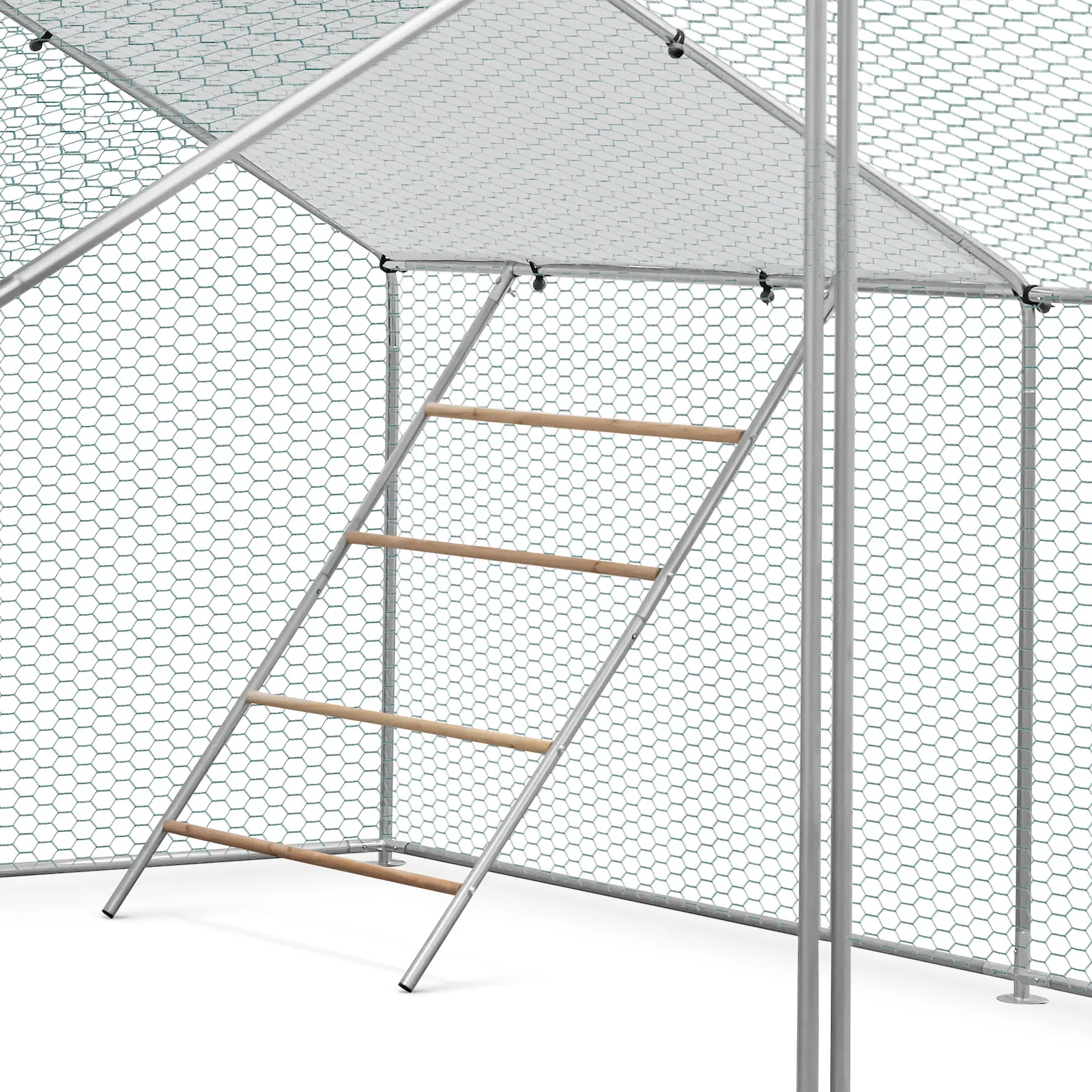 Deine Hühner werden's lieben! Diese 4-stufige Leiter mit Sitzstange (140x105cm) ist der perfekte Spielplatz für deine Federtiere. Aus verzinktem Stahlrohr und Naturholz - super stabil und langlebig. Mit Schaukel für entspanntes Schaukeln - das fördert die Gesundheit und Ei-Qualität! Einfache Montage, passt in jeden Stall oder Gehege. Platz für mehrere Hühner gleichzeitig, reduziert Streitigkeiten. Anpassbare Struktur für verschiedene Gehege-Größen. Mach deine Hühner glücklich - mit diesem tollen Kletter- und Ruheplatz!