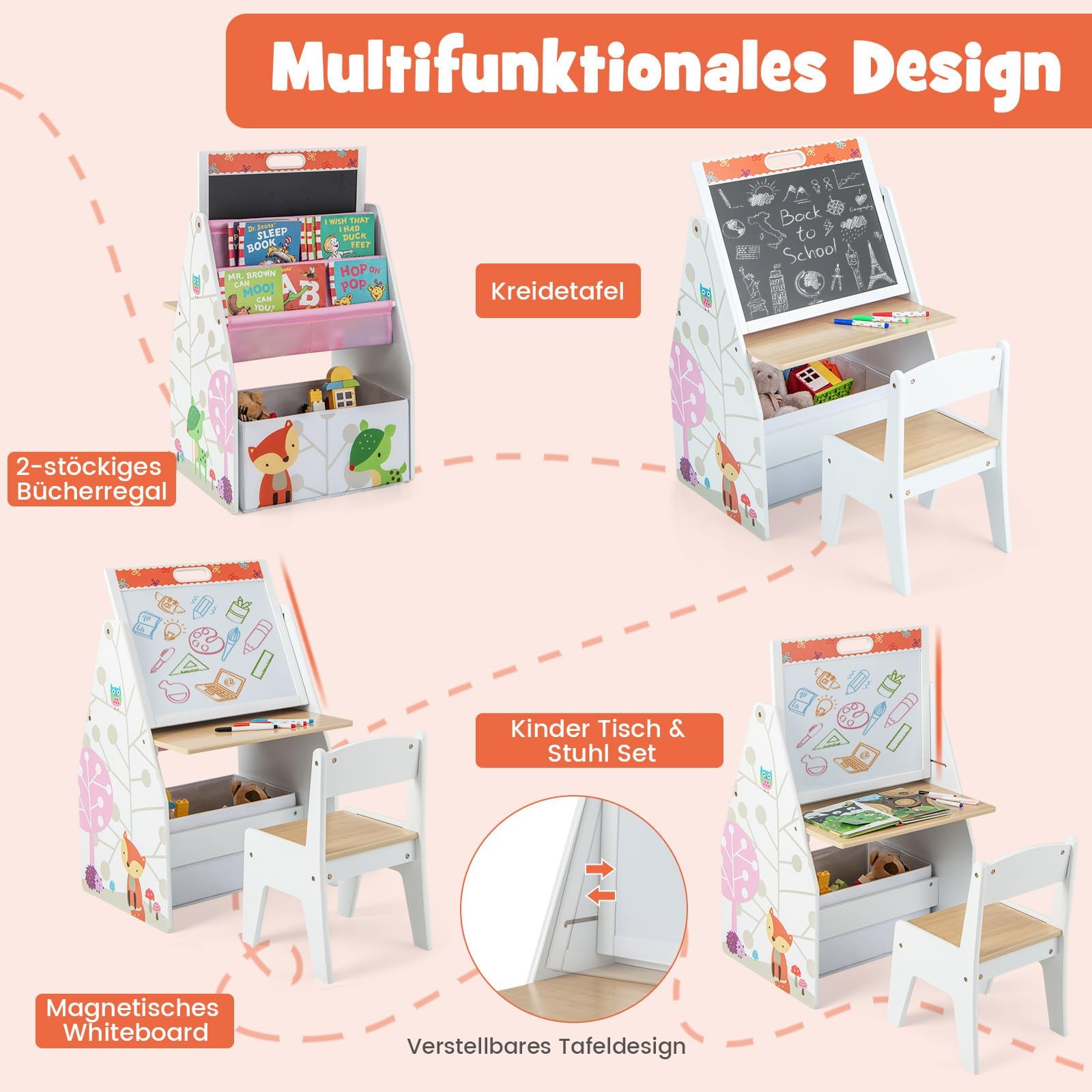 Super praktisch: Integriertes Bücherregal, Stifthalter und Stauraum unter dem Tisch. Alles hat Platz - Bücher, Spielzeug, Stifte. Die konkave Ablage schützt zudem die Knie deines Kindes.