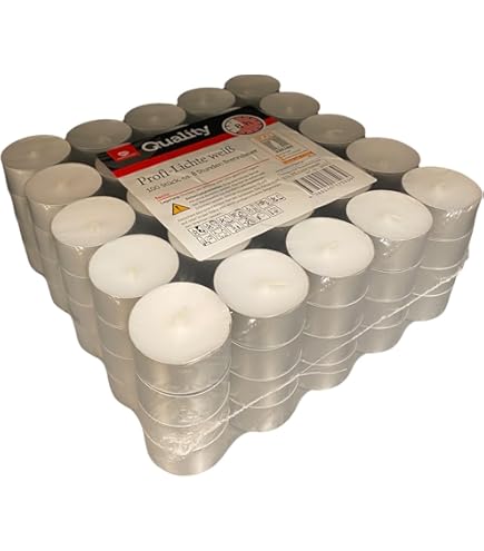 Hey Kerzen-Fans! Diese hillfield Teelichter sind deutsche Qualität vom Feinsten! Jedes Teelicht brennt ca. 4 Stunden - selbst bei mehrmaligem Anzünden bleibt kaum Restwachs übrich. Weiße Farbe, blauer oder weißer Docht und eine schöne, große Flamme sorgen für gemütliche Atmosphäre. Gleichmäßiger, zuverlässiger Abbrand - da musst du dir keine Sorgen machen. Perfekt für Windlichter, Duftlampen oder stimmungsvolle Abende. Im praktischen Flatpack/Beutel - platzsparend und gut zu lagern. Ob für Zuhause, Feiern oder Restaurant - mit diesen Teelichtern liegst du immer richtig. Deutsche Markenqualität, die überzeugt - bestell sie dir und genieße gemütliche Lichtmomente!