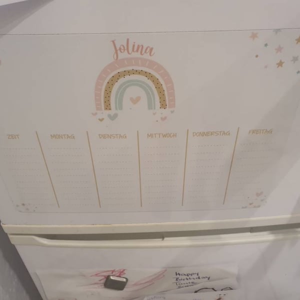 Nie wieder Chaos im Schulalltag! Dieser praktische magnetische Stundenplan (21x29,5cm) hilft deinem Kind, den Überblick über die Schulwoche zu behalten. Einfach mit dem beiliegenden Stift beschreiben und schon sieht man auf einen Blick, welche Fächer wann anstehen. Der Clou: Er ist komplett abwischbar - wenn sich der Stundenplan ändert, einfach wegwischen und neu beschreiben. Durch das Magnet-Material haftet er perfekt am Kühlschrank, Whiteboard oder anderen metallischen Oberflächen. Du kannst ihn sogar mit dem Namen deines Kindes personalisieren! Das ideale Geschenk zur Einschulung, zum Schulstart oder einfach als Hilfe für den Alltag. So macht Organisation Spaß und dein Kind lernt spielerisch, Verantwortung für seinen Tagesablauf zu übernehmen. Praktisch, langlebig und kindgerecht!
