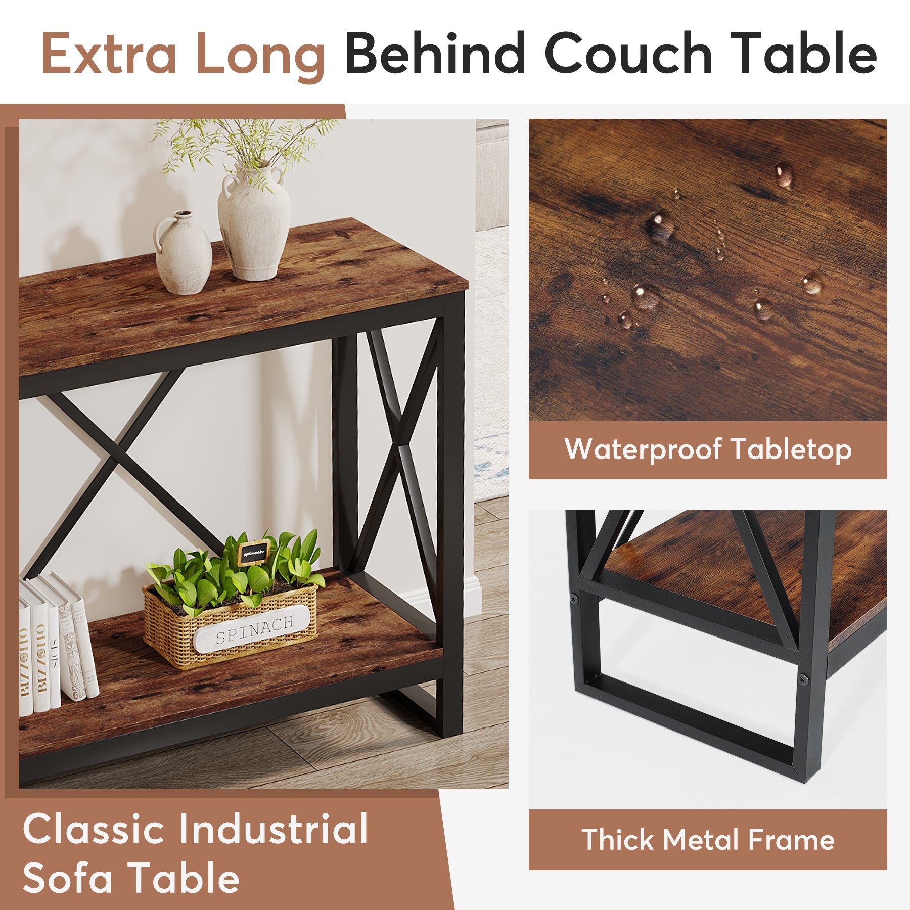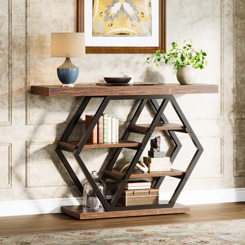 Tribesigns Konsolentisch 105cm Farmhouse Style - 2-stöckiger Sofatisch Mit Stauraum