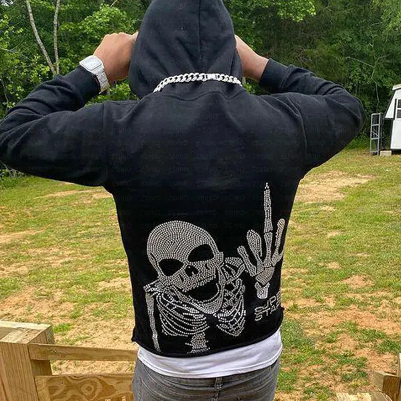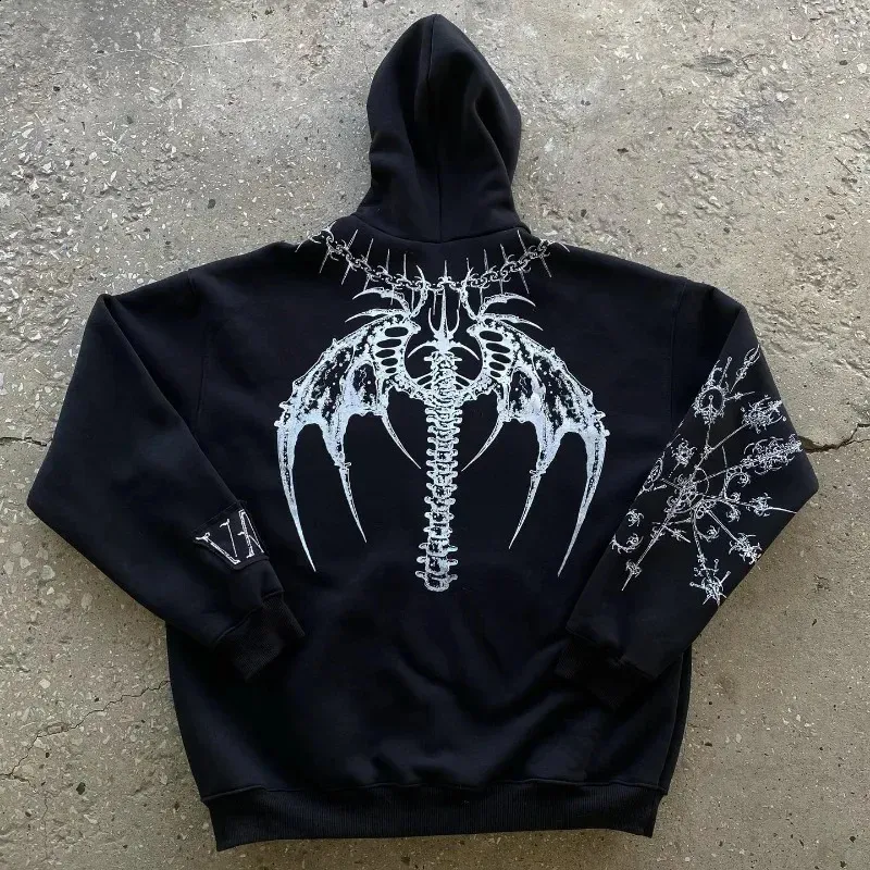 Gothic Skelett Hoodie Y2K Style - Punk Kapuzenpullover Für Herren & Damen