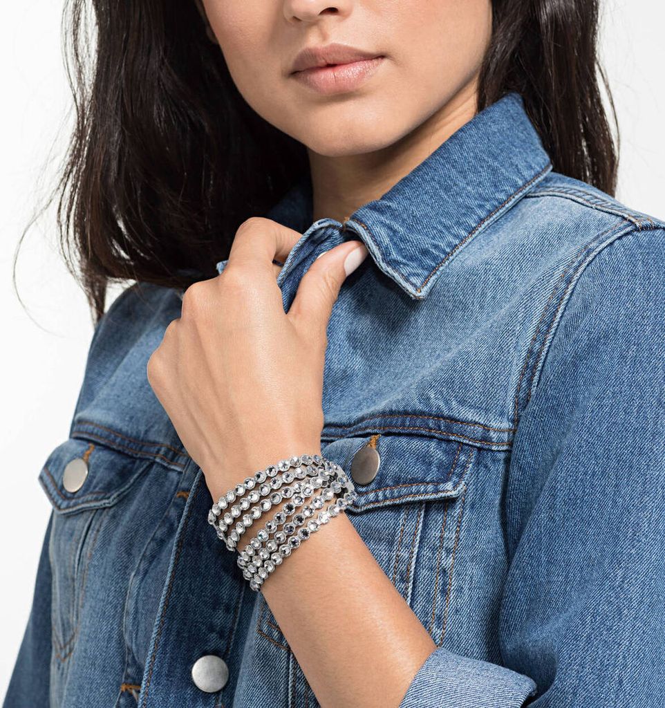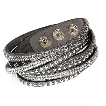 Lass deine Arme funkeln! Dieses elegante Wickelarmband von StyleBREAKER umschlingt dein Handgelenk zweimal und verleiht jedem Outfit sofortigen Glamour. Die funkelnden Strasssteine glitzern bei jeder Bewegung und die praktische Größenverstellung in 2 Stufen sorgt für perfekten Sitz. Mit dem Druckknopf-Verschluss geht das An- und Ablegen ratzfatz. Das superweiche Material liegt angenehm auf der Haut und das schmale Design von ca. 1,2cm Breite ist nicht zu auffällig, aber dennoch wunderschön. Perfekt fürs Büro, den Abend oder einfach um deinem Alltags-Look etwas Glamour zu verleihen! Länge: ca. 40cm • Breite: ca. 1,2cm • Material: PU + Strass • Besonderheit: 2-stufige Größenverstellung