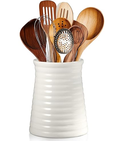 Schluss mit dem Chaos in der Küche! Dieser Keramik-Utensilienhalter bringt Ordnung auf deine Arbeitsplatte. Aus hochwertiger, blei- und cadmiumfreier Keramik ist er nicht nur super robust, sondern sieht auch noch richtig gut aus. Ob Kochlöffel, Pfannenwender, Schneebesen oder andere Küchenhelfer - hier findet alles seinen Platz. Das weiße, minimalistische Design mit dezentem Prägemuster passt zu jedem Einrichtungsstil und sieht einfach klasse aus. Und das Beste: Der Halter ist so vielseitig - du kannst ihn nicht nur für Küchenutensilien verwenden, sondern auch als stylische Vase für frische Blumen oder zur Aufbewahrung von Bürobedarf. So hast du alles griffbereit und deine Küche bleibt schön aufgeräumt. Die Reinigung ist denkbar einfach - einfach mit einem feuchten Tuch abwischen. Ein echter Hingucker, der nicht nur praktisch ist, sondern deiner Küche auch noch das gewisse Etwas verleiht. Endlich mehr Ordnung und Style in deiner Küche!