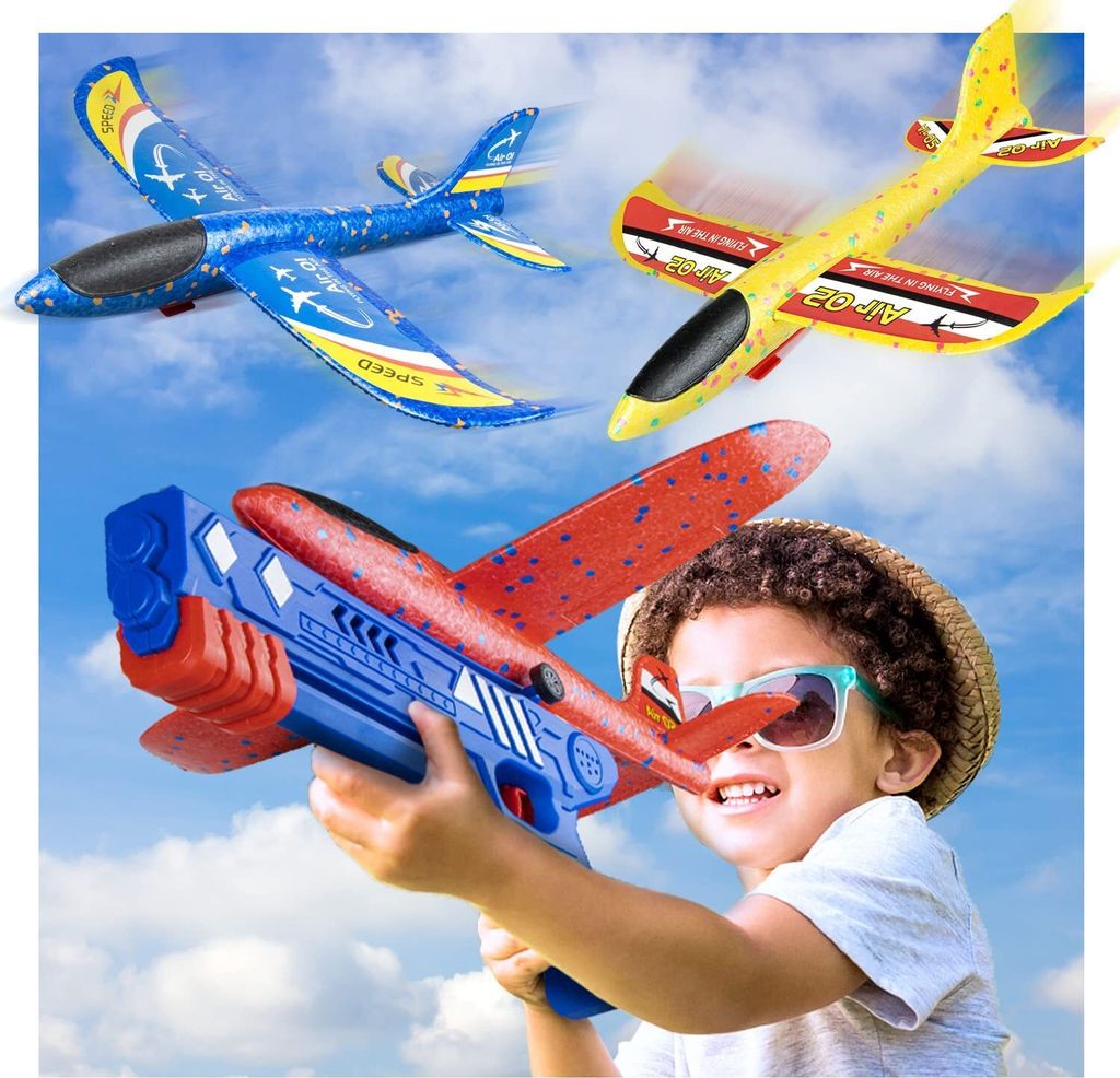 • Styroporflieger Spielzeug Für Kinder - Wurfflugzeug Mit Launcher Für Draußen