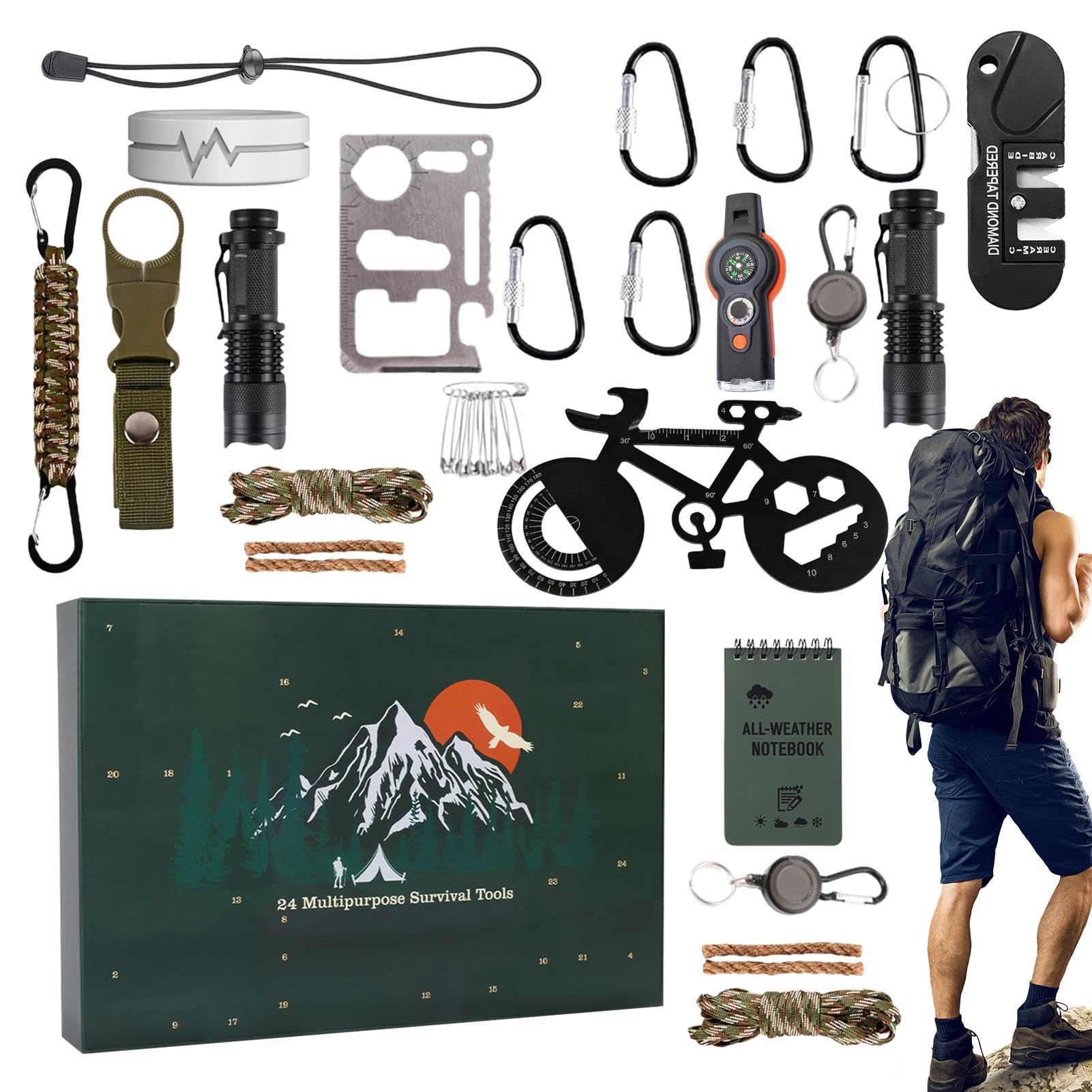 Suchst du ein außergewöhnliches Geschenk für einen Outdoor-Begeisterten? Dieser Survival-Adventskalender ist genau das Richtige! Statt Schokolade gibt's hier 24 praktische Überlebenswerkzeuge und Outdoor-Gadgets, die jedes Abenteuer-Herz höher schlagen lassen. Vom 1. bis 24. Dezember gibt es täglich ein neues Tool - perfekt für Camping, Wandern, Angeln oder einfach nur zur Vorbereitung auf Notfälle. Das Kalender-Maß von 42,6 x 27,5 x 3,5 cm sieht nicht nur cool aus, sondern bietet auch genug Platz für alle Überraschungen. Die Tools sind eine Mischung aus Metall, ABS-Kunststoff und Stoff - also robust und praktisch. Ob für deinen Ehemann, Vater oder besten Kumpel - dieser Kalender macht die Wartezeit auf Weihnachten zu einem echten Abenteuer. Leicht und transportabel, kann das komplette Set später im Rucksack mitgenommen werden. Ein Geschenk, das nicht nur in der Vorweihnachtszeit für Begeisterung sorgt, sondern das ganze Jahr über nützlich ist. Für alle, die lieber in der Wildnis als auf dem Weihnachtsmarkt unterwegs sind!