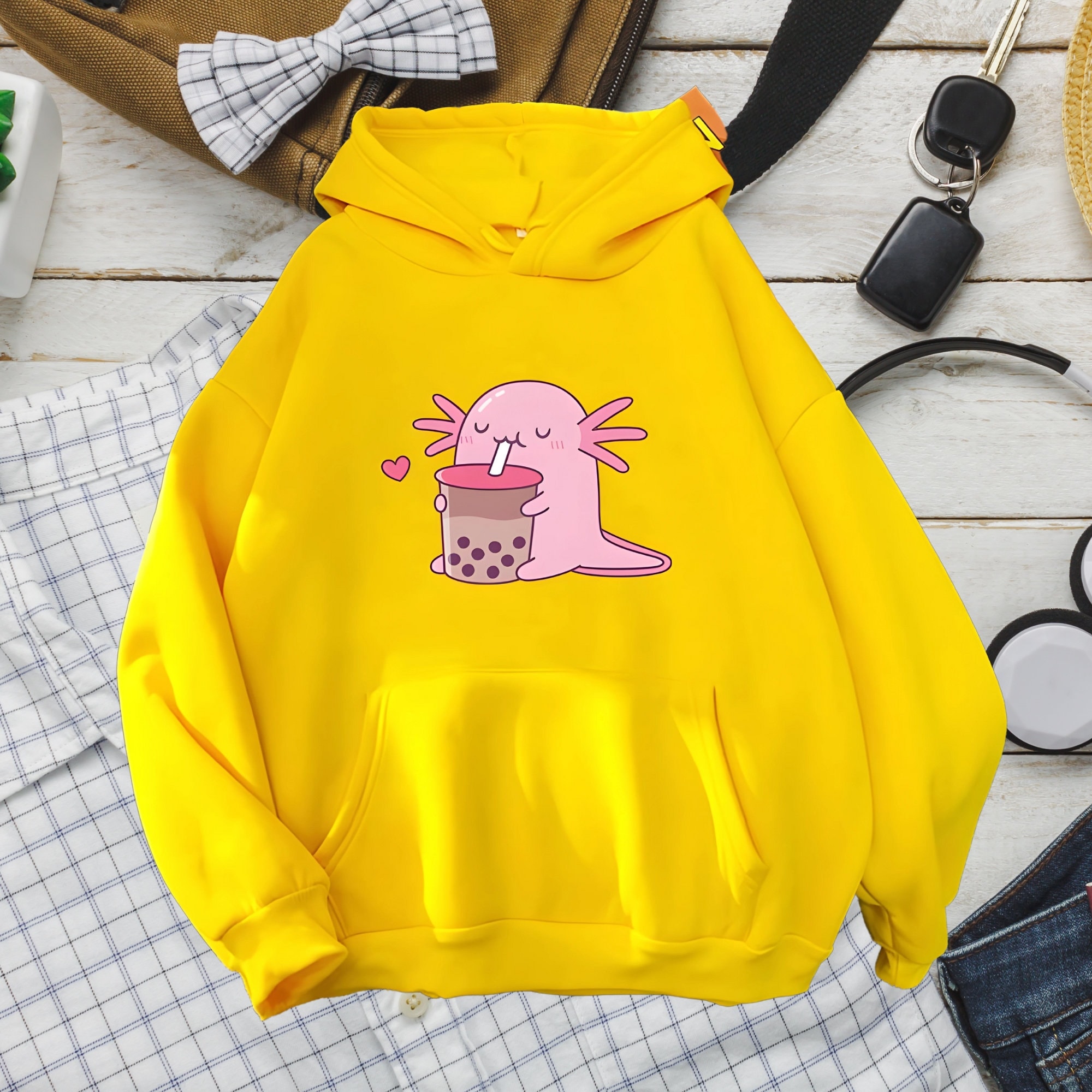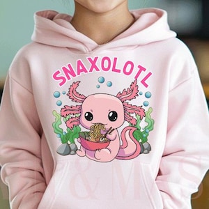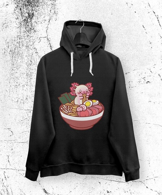 Total niedlich! Dieser Hoodie mit dem süßen Axolotl, der Sushi isst, ist perfekt für alle, die japanische Kawaii-Kultur lieben. Das Design zeigt einen putzigen Axolotl unter einem Kirschblütenbaum - einfach zauberhaft! Ob du selbst Axolotl besitzt oder einfach nur dieses einzigartige Design liebst, dieser Pullover ist ein absoluter Hingucker.