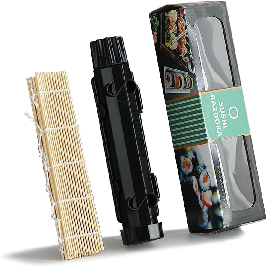 Lust auf selbstgemachtes Sushi? Mit diesem 6-teiligen Set wird Sushi machen zum Kinderspiel! Perfekt für Anfänger, die sich an die japanische Küche herantrauen wollen.\\n\\nIm Set enthalten: Sushi-Bazooka (der praktische Roller), Bambusmatte, Reisschaufel, Sushi-Messer, Essstäbchen und einen Teller. Alles, was du für den Start brauchst!\\n\\nDie Bazooka macht das Rollen super einfach - einfach Reis und Belag einfüllen, zusammenschieben und schon hast du eine perfekte Sushi-Rolle. Kein Gefummel mehr mit der Bambusmatte!\\n\\nDie hochwertigen Materialien sind langlebig und lebensmittelecht. Das Sushi-Messer schneidet die Rollen sauber durch, ohne sie zu quetschen. Kompakt verstaubar, damit es in keiner Küche Platz wegnimmt.\\n\\nMach dein eigenes Sushi-Restaurant zu Hause auf! Frischer, gesünder und viel günstiger als beim Lieferdienst. Einfach Reis kochen, Belag vorbereiten und mit dem Set tolle Sushi-Kreationen zaubern. Auch ein super Geschenk für Hobbyköche!