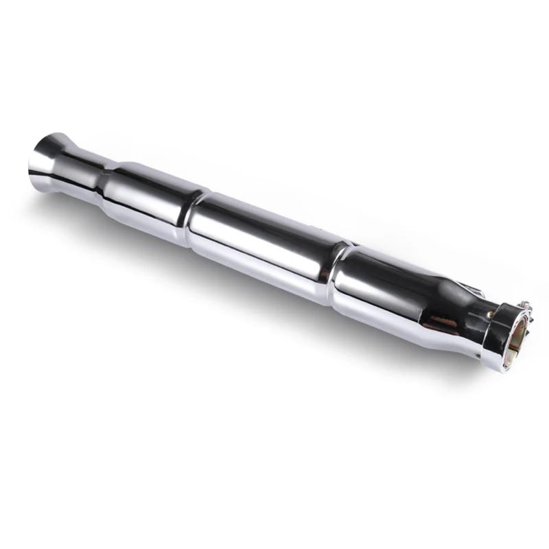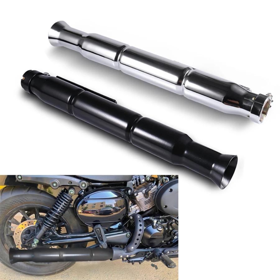 Für alle Suzuki Intruder-Besitzer: Diese Auspuffschalldämpfer in Chrom-Optik sind genau das Richtige! Mit 41cm Länge und aus hochwertigem Stahl gefertigt, verleihen sie deinem Motorrad nicht nur einen kraftvollen, donnernden Sound, sondern sehen auch noch richtig gut aus.\n\nTechnische Highlights:\n• Passend für Suzuki VL 125, 800, 1500 Intruder\n• Universell für linke und rechte Seite\n• Für Rohrdurchmesser 1-3/8\ bis 1-3/4\\n• Inklusive Reduzierstück\n• Verbessert die Leistung und Gasannahme\n\nDie Schalldämpfer reduzieren nicht nur die Lärmbelästigung, sondern sorgen auch für einen gleichmäßigeren Abgasstrom. Einfach den alten Auspuff ersetzen und von verbessertem Sound und besserer Performance profitieren. Das chromfarbene Design gibt deinem Bobber den letzten Schliff!