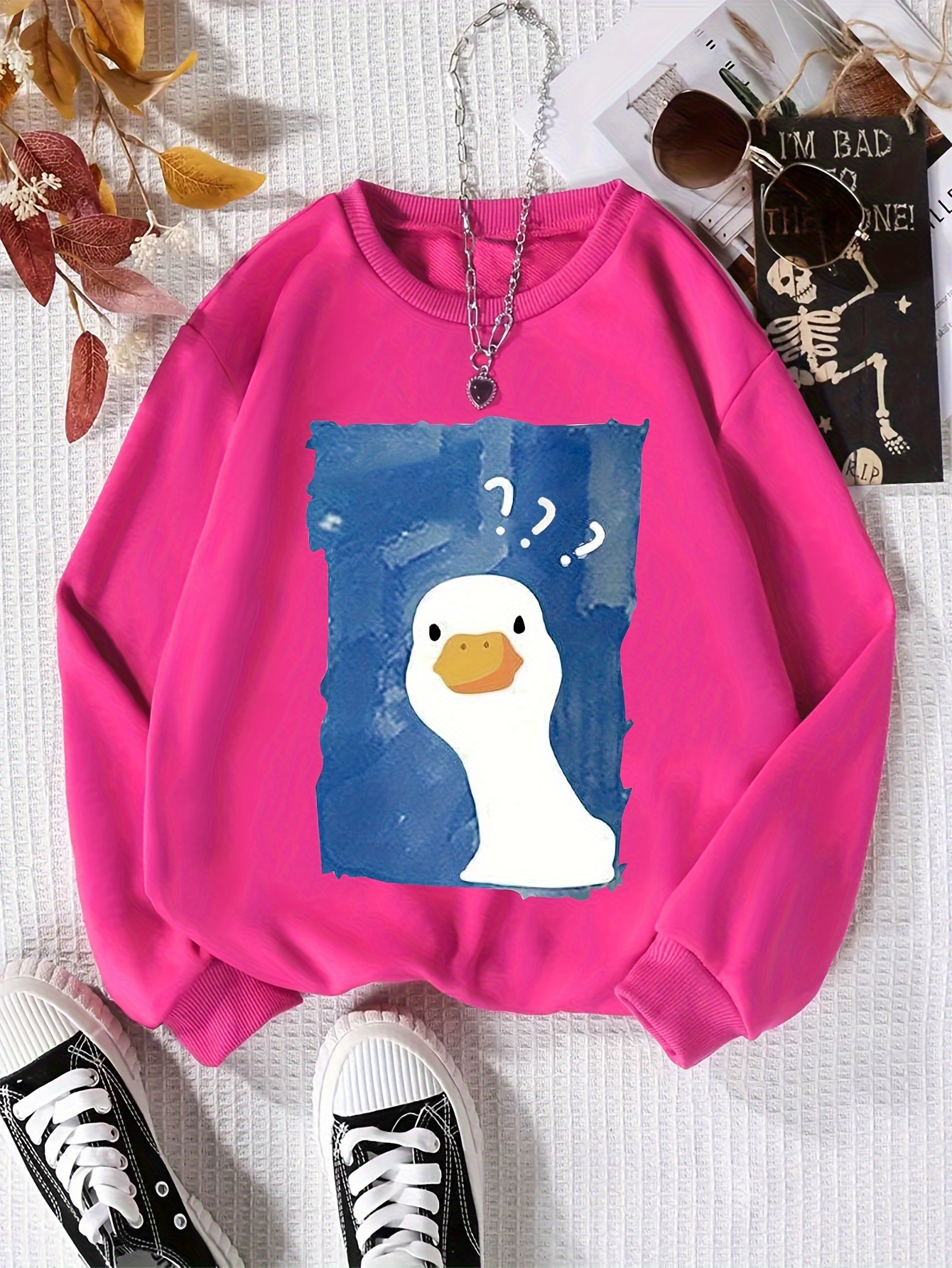 Suchst du ein gemütliches Sweatshirt für deine Tochter? 👧 Dieses lässige Langarm-Shirt ist perfekt für die kühleren Tage im Herbst und Winter!\n\nMit dem klassischen Rundhalsausschnitt sitzt es super bequem und sieht immer stylisch aus. Der Stoff ist atmungsaktiv und weich - genau das Richtige für aktive Kinder, die den gan Tag in Bewegung sind.\n\nWas ich besonders praktisch finde: Das Shirt ist super vielseitig kombinierbar! Ob mit Jeans für den Spielplatz, mit Röcken für besondere Anlässe oder mit Leggings für gemütliche Tage zu Hause - es passt immer.\n\nDie Qualität ist richtig gut - strapazierfähig und pflegeleicht. Einfach in die Maschine und schon ist es wieder frisch. Perfekt für den täglichen Gebrauch im Kindergarten, in der Schule oder in der Freizeit.\n\nDie Passform ist loose, also nicht zu eng, aber auch nicht zu weit. Deine Tochter hat genug Bewegungsfreiheit zum Spielen, Toben und Entdecken.\n\nMit den coolen Prints wird das Shirt zum echten Hingucker. Und die Langarm-Ausführung hält an kühlen Tagen schön warm.\n\nEgal ob für den morgendlichen Weg zur Schule, den Nachmittag auf dem Spielplatz oder das gemütliche Chillen zu Hause - mit diesem Sweatshirt ist deine Kleine immer perfekt angezogen!\n\nAlso: Einfach bestellen und deine Tochter wird dieses bequeme Shirt lieben! Perfekt für die kalte Jahreszeit und ein Must-Have in jedem Kinderkleiderschrank! 🍂