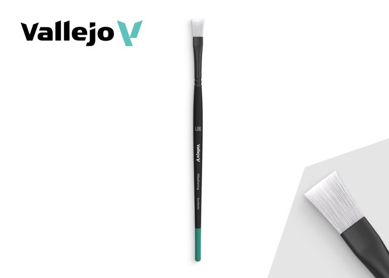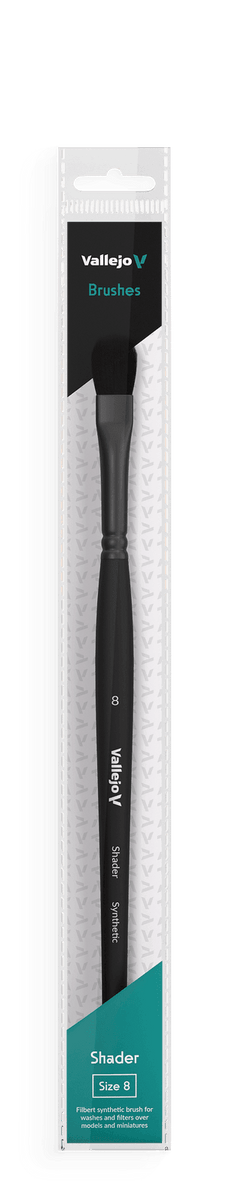Hey du kreativer Künstler! Dieser Vallejo Shader Pinsel ist ein absolutes Must-Have für jeden, der mit Figuren, Modellen oder Miniaturen arbeitet. Die Form 'Filbert Flat' ist total vielseitig - nicht zu rund, nicht zu flach, sondern genau der perfekte Mittelweg.\n\nGröße 8 ist ideal für die meisten Shading-Arbeiten - groß genug für flächige Arbeiten, aber dennoch präzise genug für Details. Die synthetischen Borsten sind superweich und geben trotzdem genug Kontrolle für feinste Arbeiten.\n\nWas diesen Pinsel besonders macht? Er hält die Farbe super und gibt sie kontrolliert ab - perfekt für das Auftragen von Shades, das Arbeiten mit Washes oder das Setzen von Highlights. Die Borsten verlieren keine Haare und behalten ihre Form auch bei intensiver Nutzung.\n\nEgal ob du Warhammer-Figuren verschönerst, Scale-Modelle lackierst oder andere Miniaturen zum Leben erweckst - mit diesem Pinsel machst du nichts falsch. Er liegt gut in der Hand und die Spitze bleibt auch nach längerem Gebrauch schön definiert.\n\nReinigen geht übrigens ganz easy - einfach mit warmem Wasser und milder Seife. So hast du lange Freude an dem qualitativ hochwertigen Pinsel.\n\nFür Einsteiger und Profis gleichermaßen geeignet. Wenn du deine Malergebnisse auf das nächste Level bringen willst, ist dieser Vallejo Pinsel genau die richtige Wahl. Mit dem machst du aus jeder Figur ein kleines Kunstwerk!