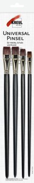 Für alle Kreativen: Dieses KREUL Universalpinselset ist perfekt für Hobby, Schule und Kunst! Das 4-teilige Set enthält flache Synthetikpinsel in den Größen 12, 16, 18 und 20. Die goldfarbenen Synthetikfasern in nahtloser silberfarbener Zwinge ermöglichen eine gute Farbspeicherung für exaktes Arbeiten. Sehr elastisch und strapazierfähig mit exzellenter Formhaltung - ideal für nahezu alle Farben und Techniken. Die langen lackierten Stiele liegen gut in der Hand. Ob für Acryl, Aquarell, Gouache oder andere Maltechniken - diese Universalpinsel sind echte Allrounder. Einfach ein qualitativ hochwertiges Set, das sowohl für Anfänger als auch Fortgeschrittene ideal ist. Deine kreativen Projekte warten!