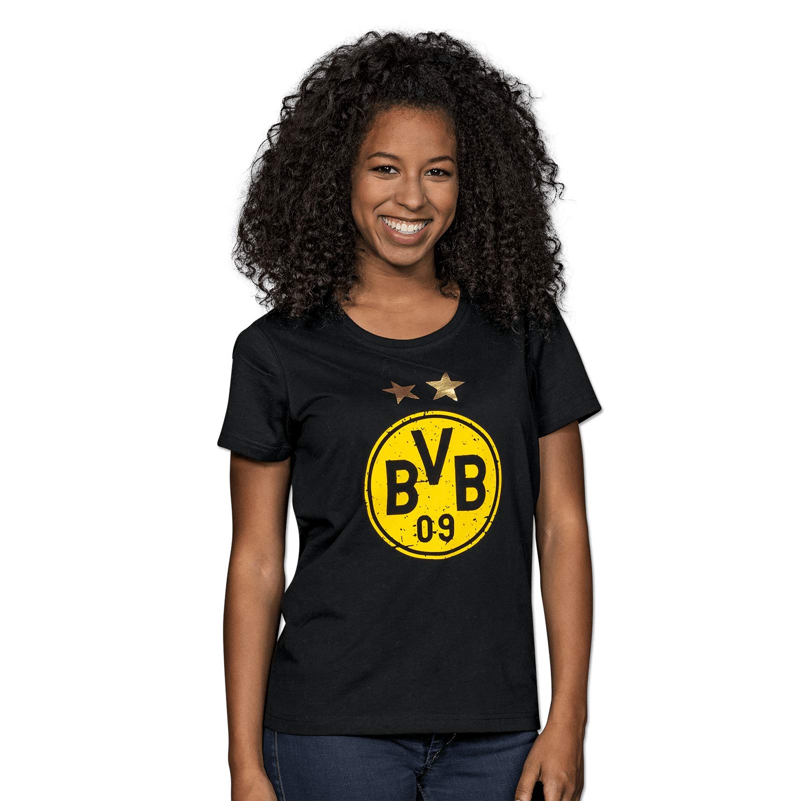 • Borussia Dortmund Damen T-Shirt 'Borussin' - Schwarzes BVB Shirt 100% Baumwolle