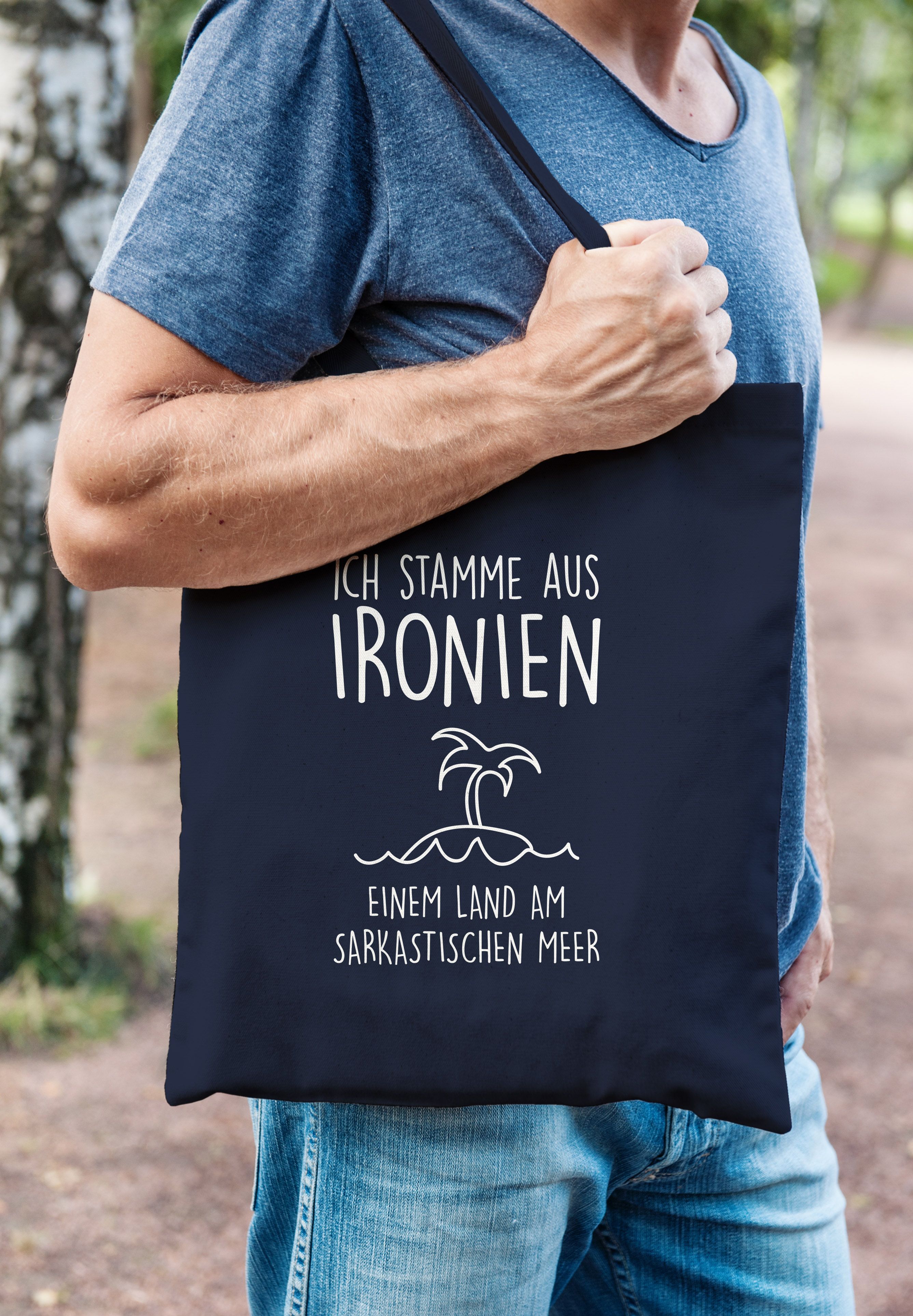 Total witziges Spruch-Shirt für alle mit trockenem Humor! Das MoonWorks T-Shirt mit dem Text 'Ich stamme aus Ironien einem Land am sarkastischen Meer' bringt garantiert Lacher. Aus 100% weicher Baumwolle mit besonders angenehmem Tragegefühl. Bis Größe XXL tailliert geschnitten, ab 3XL comfort Fit für mehr Bewegungsfreiheit. Erhältlich von XS bis 4XL - für jeden die passende Größe. Hochwertiger Druck für langanhaltende Farbbrillanz. Perfekt für Freizeit, Parties oder als Geschenk für humorvolle Menschen. Maschinenwaschbar bis 30°C - einfach auf links drehen und schonen. Hebe dich vom Mainstream ab mit diesem kreativen Design. Ein Shirt, das Stil und Humor vereint - ob im Alltag oder bei besonderen Anlässen. Mach deinem Humor Luft!