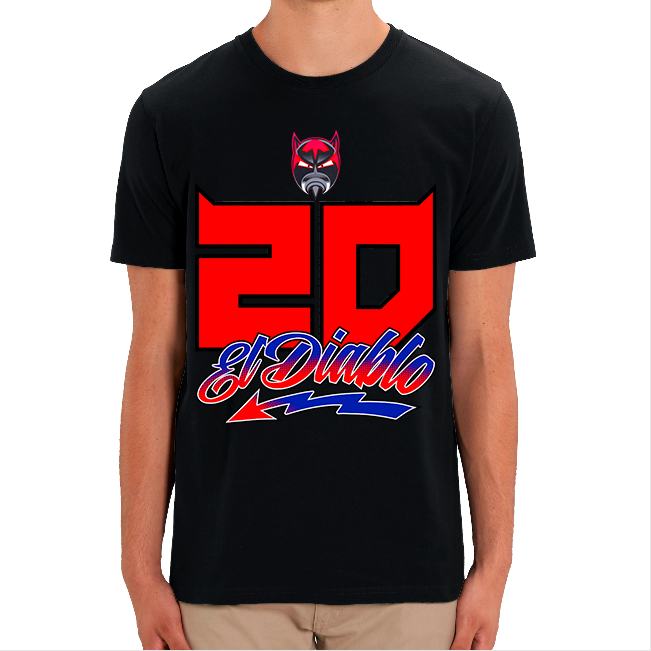 Support your favorite MotoGP champion! This Fabio Quartararo 'EL Diablo' t-shirt lets you show your love for the Yamaha star in style. Perfect for race weekends, viewing parties, or just everyday wear. \\n\\n• Comfortable cotton: Breathable and soft for all-day wear \\n• Round neck design: Classic and comfortable fit \\n• Great for sports: Moisture-wicking and durable \\n• Perfect for: Gifts, parties, race events \\n\\nWhether you're watching from the stands or from your couch, rep your favorite rider in comfort and style. The perfect addition to any MotoGP fan's wardrobe!
