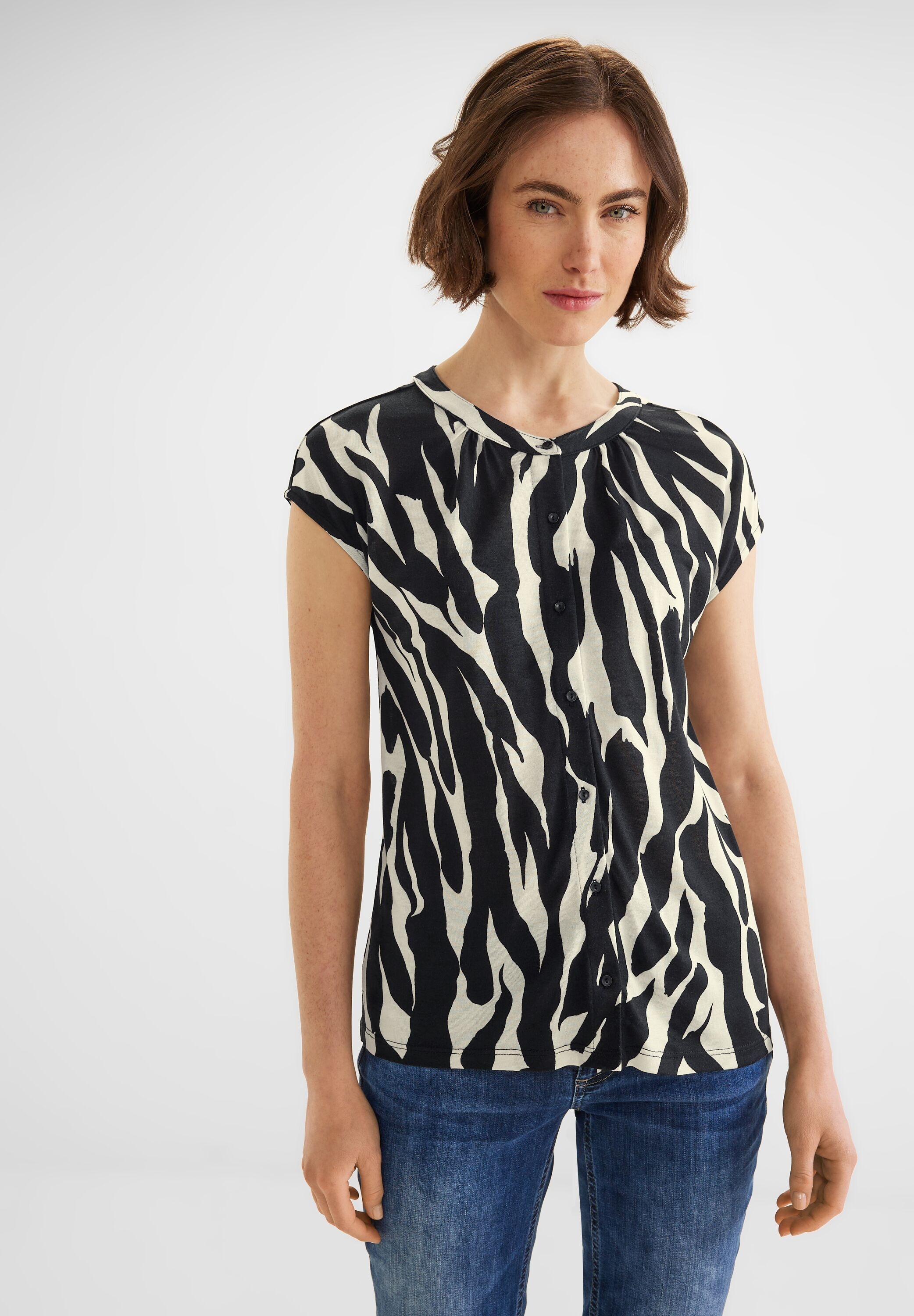 Street One Damen T-Shirt Mit Zebra Print - Turtleneck Kurzarm