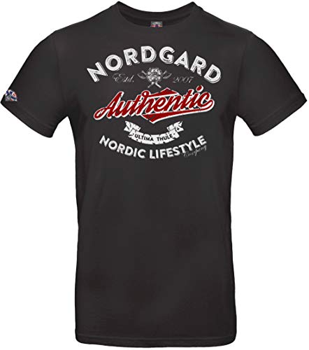 Zeige deine Verbundenheit mit der nordischen Mythologie! Dieses coole Viking T-Shirt von NORDGARD features ein beeindruckendes Design mit den Wölfen Geri und Freki, die als Begleiter Odins bekannt sind, umgeben von einem Runenkreis. Das Vegvisir-Symbol - der isländische Wegweiser - steht für Schutz, Sicherheit und Stabilität auf deinem Lebensweg. Hergestellt in Deutschland aus 100% reiner Baumwolle und OEKO-TEX zertifiziert für höchste Qualität ohne Kompromisse. Der einlaufvorbehandelte Stoff und der strapazierfähige Aufdruck garantieren, dass das Shirt auch nach häufigem Waschen in Top-Zustand bleibt. Perfekt für alle Fans nordischer Mythologie, Wikinger-Geschichte oder einfach für alle, die stylische Motive mit Bedeutung lieben. Eine kreative Geschenkidee für Geburtstage, Weihnachten oder einfach so. Ob du nun ein echter Viking-Krieger bist oder einfach nur coole Designs magst - dieses Shirt macht immer eine gute Figur. Sei würdig für Walhalla und zeige der Welt deine Verbundenheit mit der nordischen Kultur. Komfortabel, langlebig und mit einer Botschaft - was will man mehr?