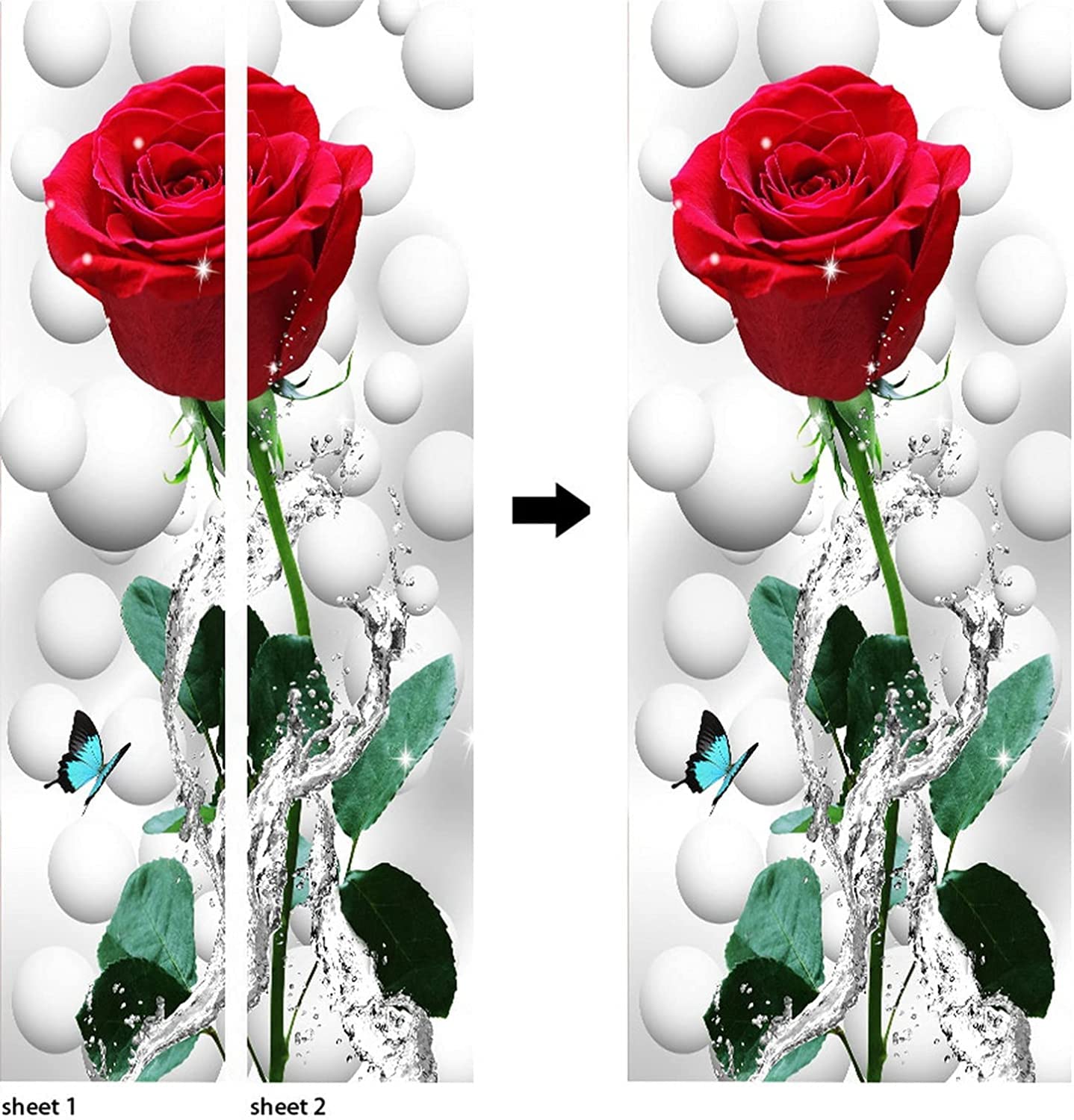 Mach deine Tür zum Hingucker! Dieser wunderschöne 3D-Rosen-Aufkleber verwandelt langweilige Türen in ein Kunstwerk. Mit 80x200cm Größe (zusammengesetzt aus 2x 40x200cm Teilen) bedeckt er komplette Zimmertüren.