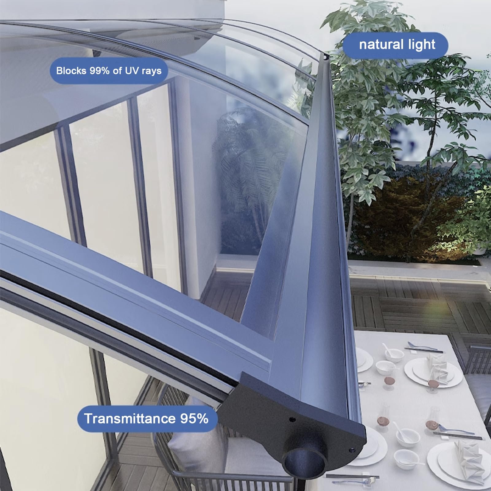 Dieses Aluminium-Vordach schützt deine Haustür perfekt vor Regen, Schnee und Sonne! Maße: 120x60cm - ideal für die meisten Haustüren. Die transparente Polycarbonat-Platte lässt 95% Licht durch, blockiert aber 99% der UV-Strahlung. Extrem stabil - hält bis zu 200kg aus. Feuerresistent und temperaturbeständig von -40°C bis 120°C. Einfache Montage - alles nötige Zubehör ist dabei. Mit Gefälle für optimale Wasserableitung. Passt zu Haustüren, Terrassen, Fenstern oder Garagen. Reduziert Heiz- und Kühlkosten durch gute Isolierung. Fast geräuschlos bei Regen - 200x bessere Schalldämmung als Glas. Mehrere Vordächer können kombiniert werden. Macht deinen Hauseingang wetterfest und sieht dabei noch stylisch aus. Ein echter Mehrwert für jedes Zuhause - Schutz und Komfort in einem!