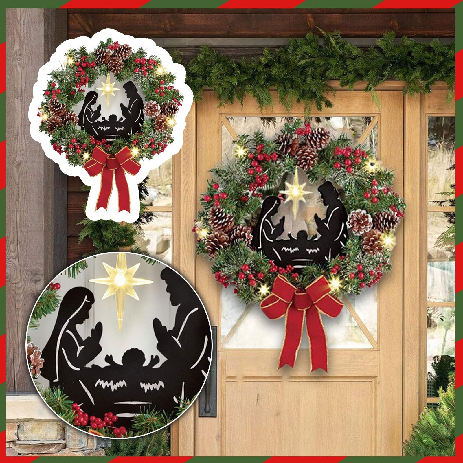 • Weihnachtskranz Mit Handschuhen - Beleuchtete Türdekoration Für Die Festtage