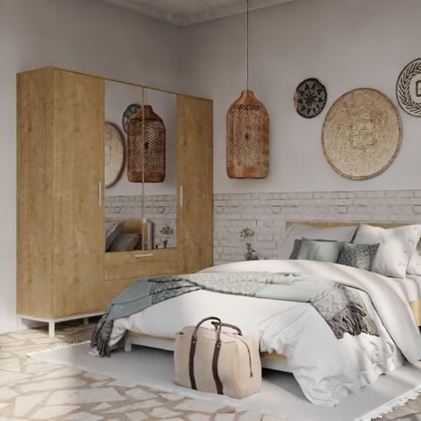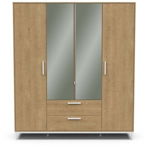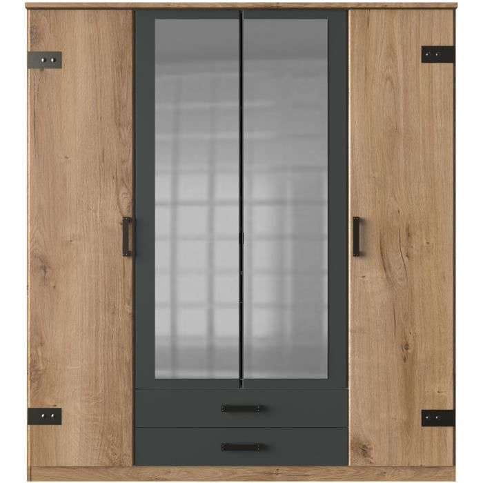 • Calicosy Kleiderschrank 4 Türen - Eiche & Graphit 180cm Breite