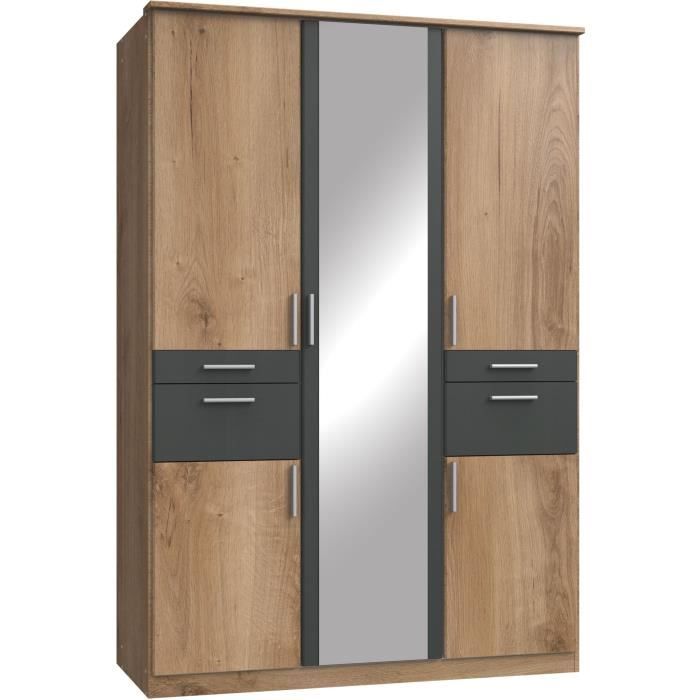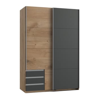 Calicosy Kleiderschrank 4 Türen - Eiche & Graphit 180cm Breite