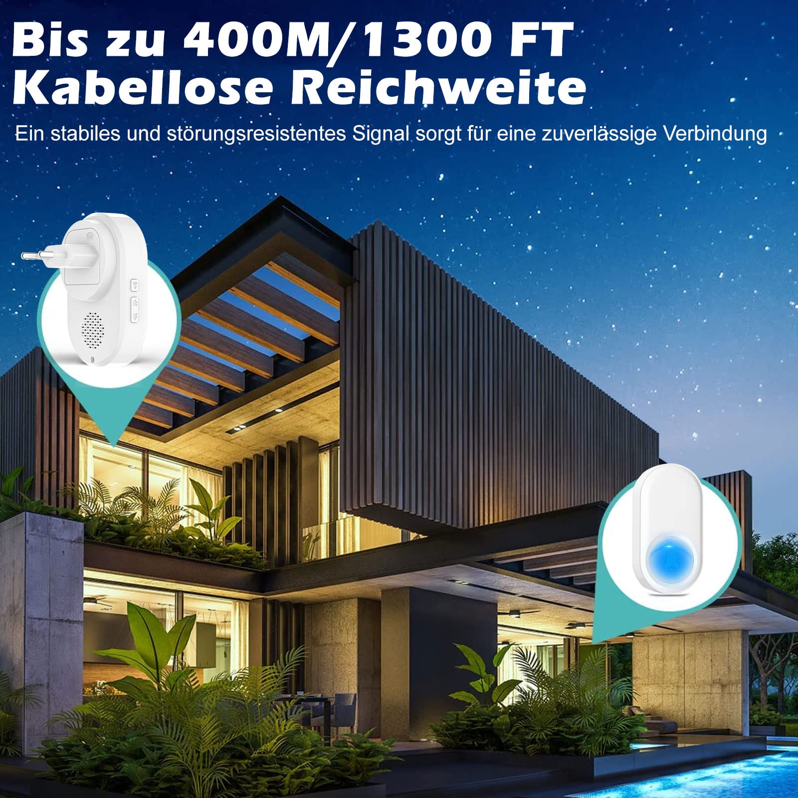 Nie wieder den Besuch verpassen! Diese SAVS Funk-Türklingel bringt modernen Komfort in dein Zuhause. Mit 400 Metern Reichweite hörst du das Klingeln auch in der hintersten Ecke des Gartens oder in der Werkstatt. Das Set kommt mit 2 Empfängern, die du einfach in die Steckdose steckst - keine Installation nötig! 52 verschiedene Melodien und 5 Lautstärkestufen bis 115 dB sorgen für Abwechslung. Die CR2032-Batterie in der Klingel hält bis zu 3 Jahre, und das Gehäuse ist komplett wasserdicht (-20° bis +60°C). Einfach mit dem mitgelieferten Klebeband oder Schrauben anbringen und fertig! Perfekt für Häuser, Büros oder Wohnblocks. Und wenn du mehr Reichweite brauchst, kannst du einfach weitere Empfänger dazu kaufen. So einfach kann Komfort sein!