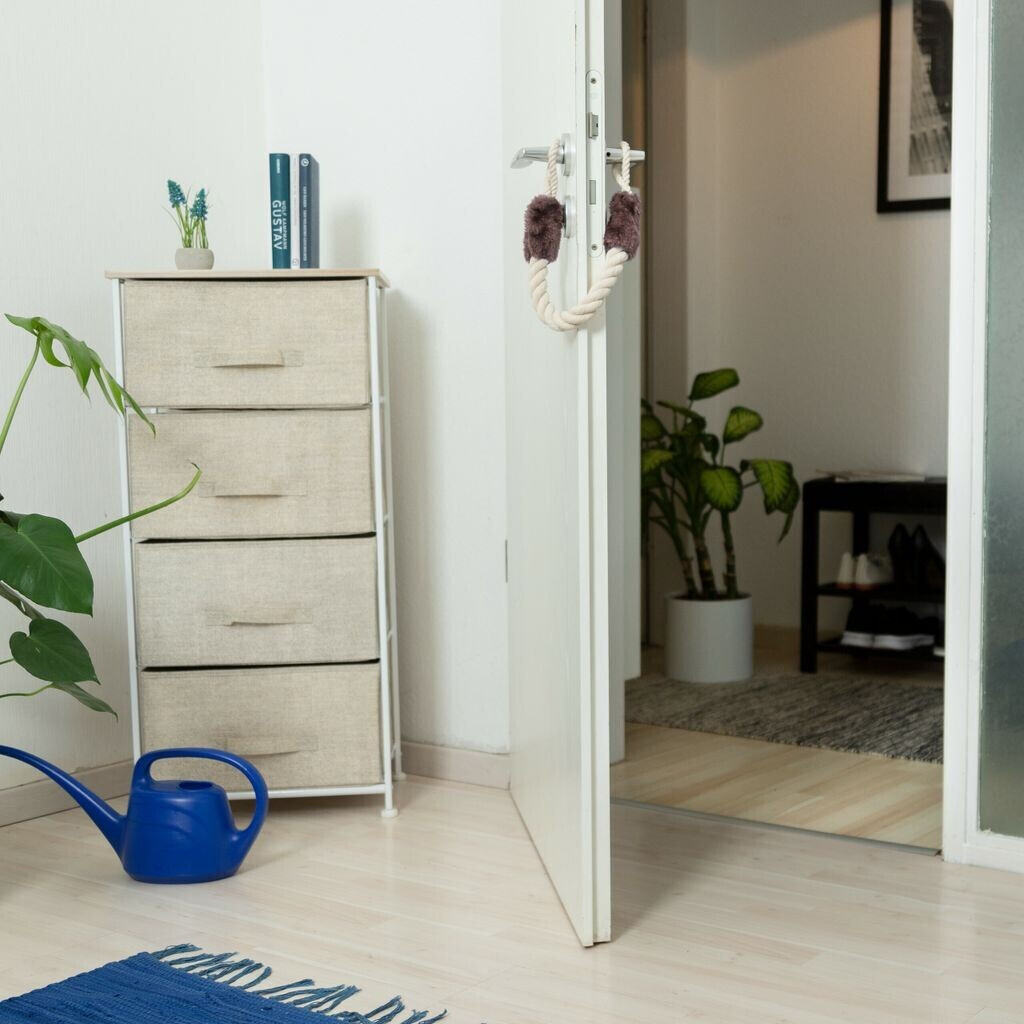 Schütze kleine Finger und neugierige Pfoten! Diese weichen Türkordeln verhindern schmerzhafte Quetschungen an Türen. Aus weicher Baumwolle mit flauschigem Plüsch - angenehm in der Hand und sicher im Einsatz. Einfach über die Türklinken ziehen, schon ist der Schutz aktiv. Bei 60cm Länge für fast alle Standardtüren geeignet. Auch praktisch als Türstopper, um Türen offen zu halten. Stylishes Design in Weiß passt zu jeder Einrichtung. Perfekt für Familien mit Kindern oder Haustierbesitzern. Einfache Lösung für mehr Sicherheit im Haushalt!