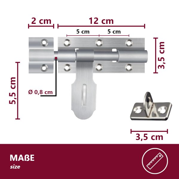 Robuster Bolzenriegel aus 304 Edelstahl für maximale Sicherheit! Mit 15,5cm Schubstange und 12mm Durchmesser - richtig stabil! Im Lieferumfang: Riegel, Vorhängeschloss (40x62mm) und 4 Schlüssel plus Montagematerial. Einfache Installation - Löcher sind vorgebohrt, einfach Schrauben eindrehen. Kann in alle Richtungen montiert werden - horizontal, vertikal, links oder rechts. Perfekt für Gartentore, Garagen, Türen, Fenster, Zäune oder Schuppen. Das Vorhängeschloss gibt extra Sicherheit. Mach dein Zuhause sicherer mit diesem professionellen Riegelsystem! Einfach, aber extrem wirkungsvoll.