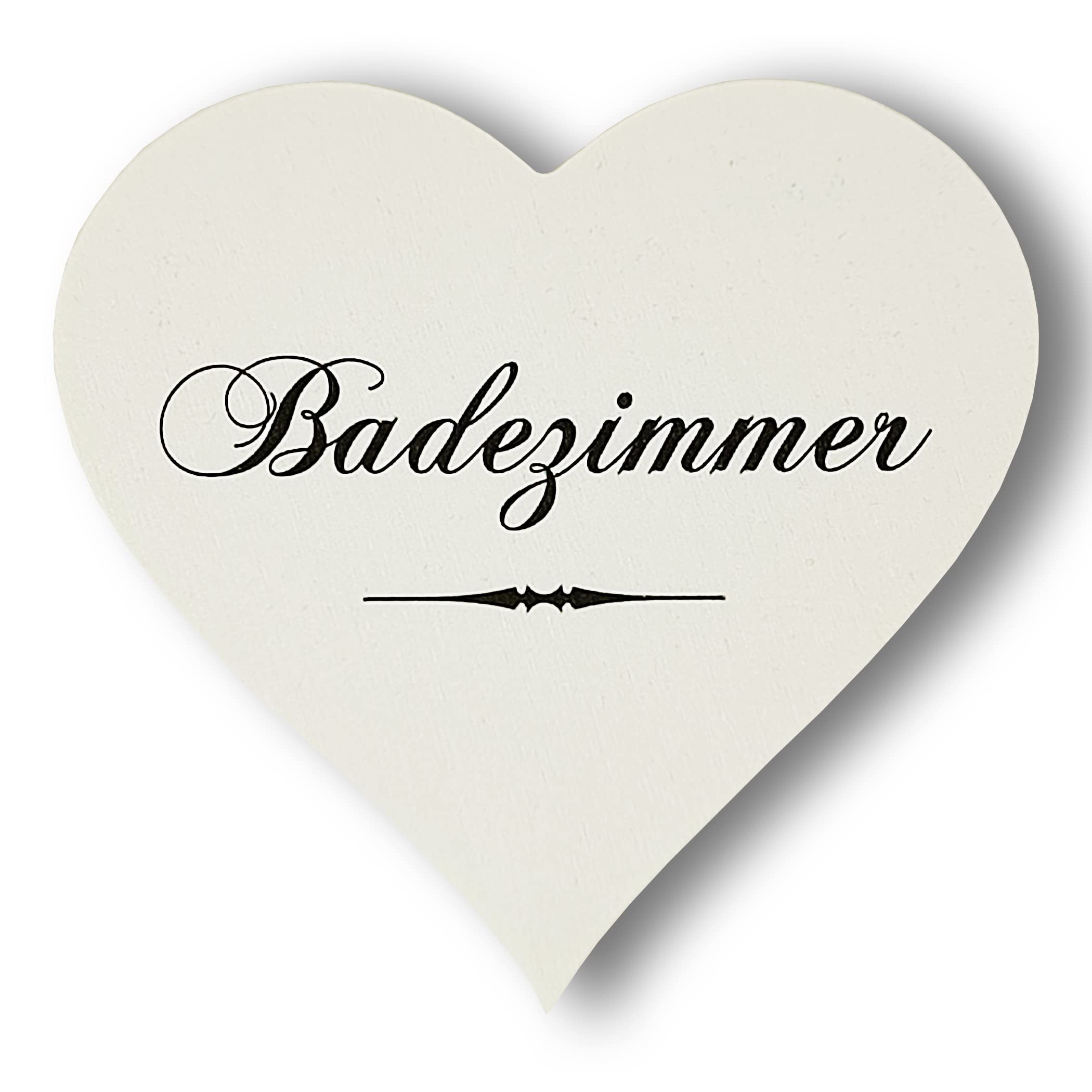 Perfekt fürs Gäste-WC, das eigene Bad oder auch fürs Kinderzimmer. Sieht total niedlich aus mit dem Herz-Design und dem Schriftzug \Badezimmer\.