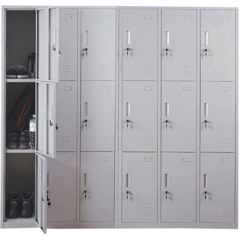 Ordnung muss sein! Dieser massive Schließfachschrank mit 12 Fächern ist perfekt für Schule, Verein oder Betrieb. Aus robustem 0,6mm Stahlblech - wirklich unzerstörbar! Jedes Fach hat ein eigenes Drehriegelschloss mit 2 Schlüsseln. Maße pro Fach: 87x29x50cm - genug Platz für Jacken, Taschen und persönliche Gegenstände. In lichtgrau RAL 7047 pulverbeschichtet - korrosionsbeständig und kratzfest. Mit Lüftungsschlitzen und Etikettenhaltern. Wird als 2x6-Fach-Spinde geliefert - kannst sie zusammen oder getrennt aufstellen. Einfacher Zusammenbau mit Stecksystem. Max. 30kg Belastung pro Fach. Perfekt für Umkleiden, Schulen oder Lagerräume. Hol dir jetzt diesen qualitativ hochwertigen Schließfachschrank!