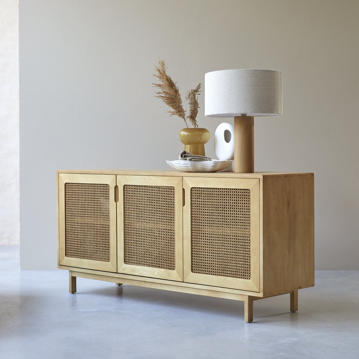 BAÏTA Anatole Anrichte Schwarz - Sideboard Mit Rattangeflecht 150x40x75cm