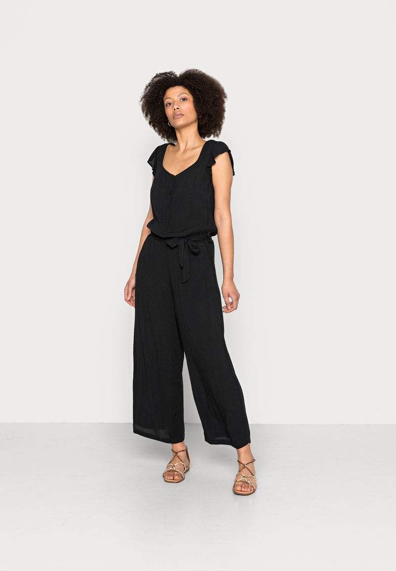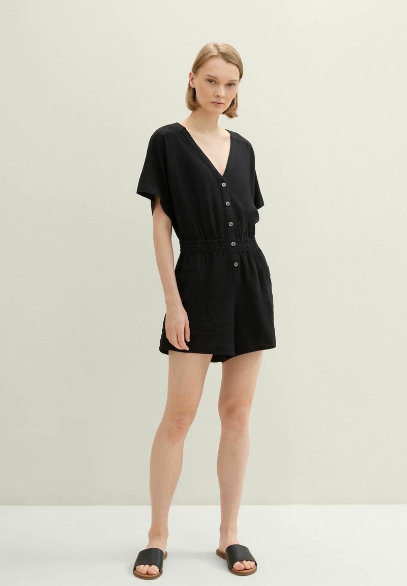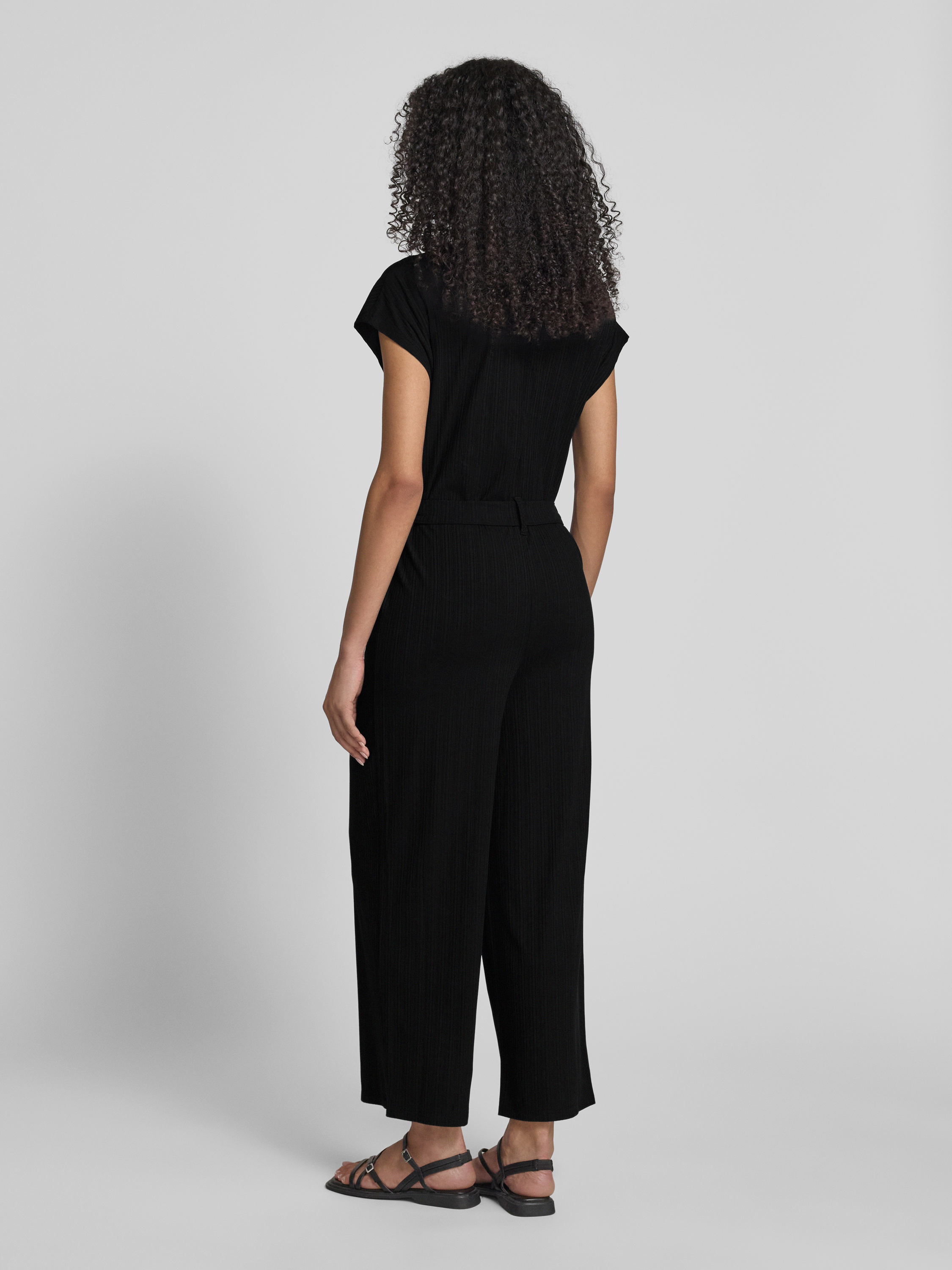Total lässiger Jumpsuit von TOM TAILOR Denim! Im trendigen Culotte-Schnitt mit weiterer Beinform - super bequem und modern. Aus strukturiertem Jacquard-Stoff mit Stretch-Anteil, der sich angenehm trägt und Bewegungsfreiheit lässt. Mit seitlichen Eingriffstaschen (praktisch!), elastischem Bund und Bindegürtel für perfekte Passform. Der Rundhalsausschnitt und die Kurzarme machen ihn vielseitig kombinierbar. Beininnenlänge bei Größe S ca. 66cm - also nicht zu lang, nicht zu kurz. Perfekt für Sommerabende, Festivals oder einfach für den Alltag. Einfach überziehen und du bist stylisch angezogen - ohne groß über Kombinationen nachdenken zu müssen. Teil der BE PART Kollektion für mehr Nachhaltigkeit.