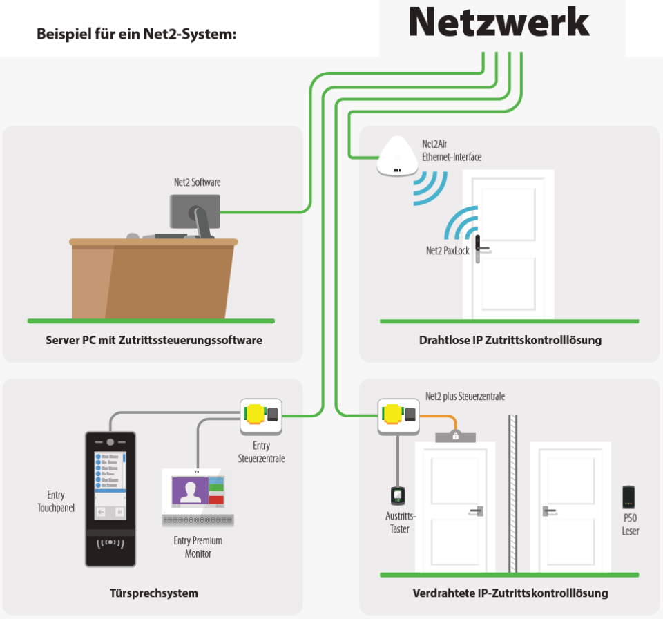 Professionelle Zutrittskontrolle für bis zu 4 Türen! Dieses System von Dioche ist mega vielseitig und sicher. Mit TCP/IP Kommunikation einfach ins Netzwerk integrierbar.
