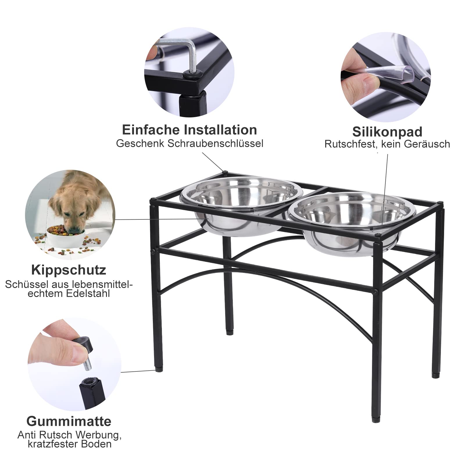 Schluss mit der Sauerei beim Füttern! Dieser superpraktische Napfständer von TEKEPL hält deine Böden sauber und gibt deinem Hund die perfekte Fressposition. Mit 2 hochwertigen Edelstahlnäpfen - einer für Futter, einer für Wasser. Die Näpfe sind abnehmbar und superleicht zu reinigen. Unter den Schalen sind Silikonmatten, die Geräusche reduzieren und Reibung verhindern. Die Anti-Rutsch-Füße schützen deine Böden vor Kratzern. Einfache Montage mit beiliegendem Sechskantschlüssel. Erhältlich in drei Größen: S (1250g), M (1750g), L (2500g) - bitte vorher die Größe deines Hundes checken! Perfekt für kleine bis große Hunde und sogar Katzen. Macht das Fressen für dein Haustier viel angenehmer und dein Zuhause sauberer!