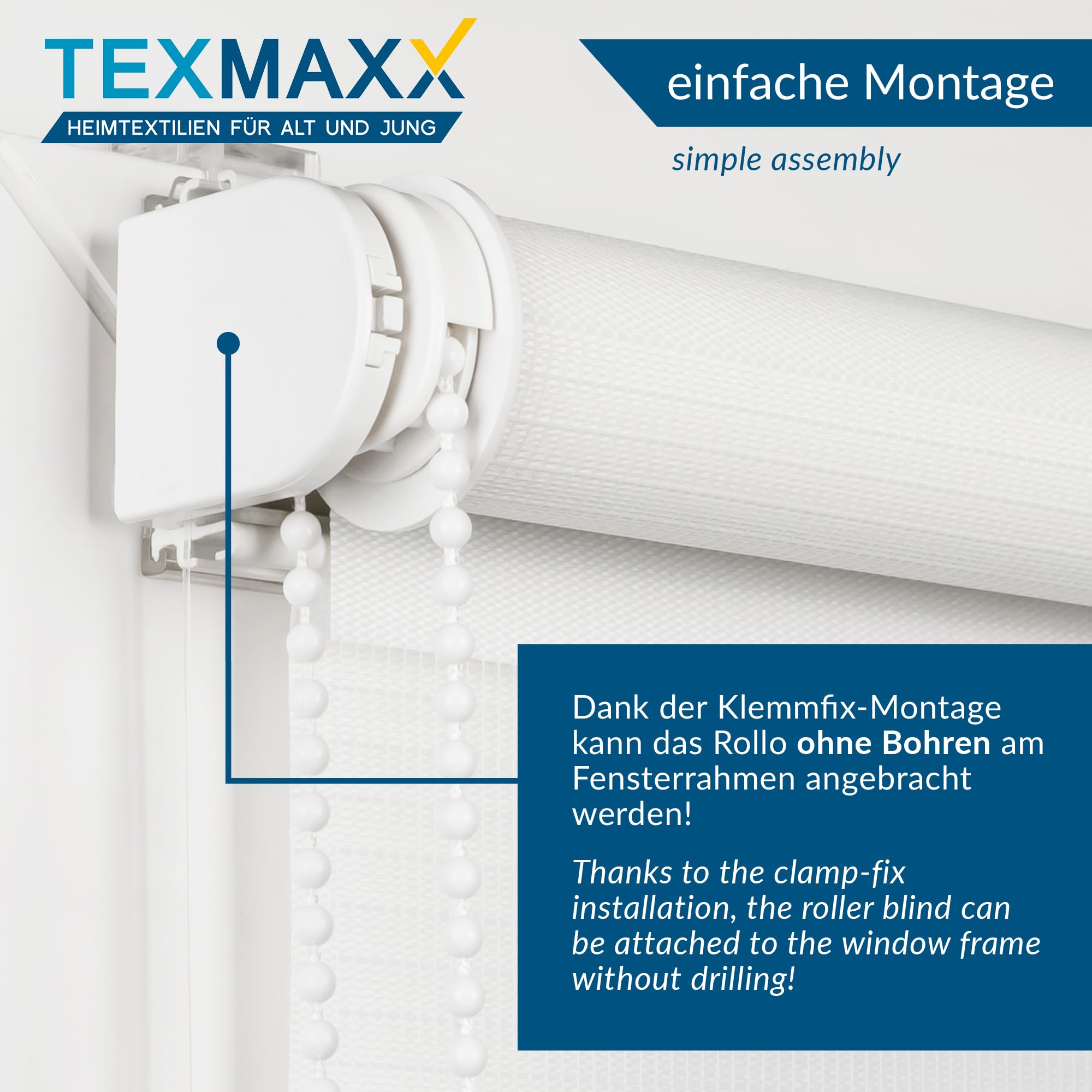 Schluss mit lästigem Bohren! Dieses TEXMAXX Doppelrollo in Weiß (70x220cm) klemmst du einfach an deinen Fensterrahmen - fertig! Super praktisch für Mieter oder alle, die ihre Wände nicht voller Löcher haben wollen. Das Besondere: Es hat zwei Stoffbahnen, die du gegeneinander verschieben kannst. So regelst du das Licht genau wie du willst - von ganz transparent bis komplett blickdicht. Einfach an der Kette ziehen und schon hast du die gewünschte Helligkeit. Aus 100% Polyester, PVC-frei und feucht abwischbar - also super pflegeleicht. Der Stoff ist etwa 4cm schmaler als die Gesamtbreite, das ist normal. Einfach ausmessen, bestellen und in wenigen Minuten montiert - mehr Komfort geht kaum!